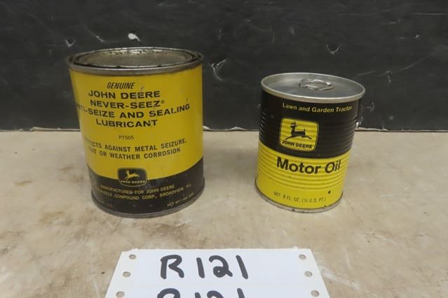 John Deere Motor Oil 8oz Tin, John Deere Anti Seize Lubricant 1 lb Tin - Both Full of Contents