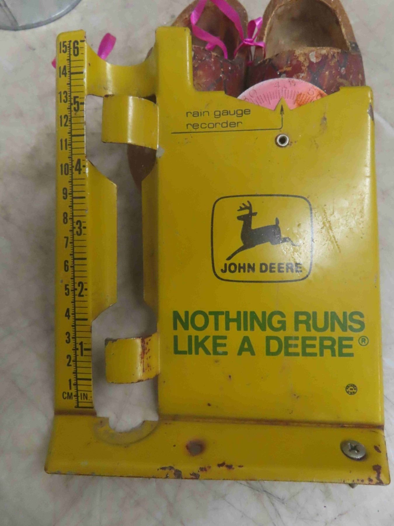 John Deere Rain Gauge (Missing Parts, See Photos), Pictures, Trophy, Badminton Rackets, Sombreros, Plus