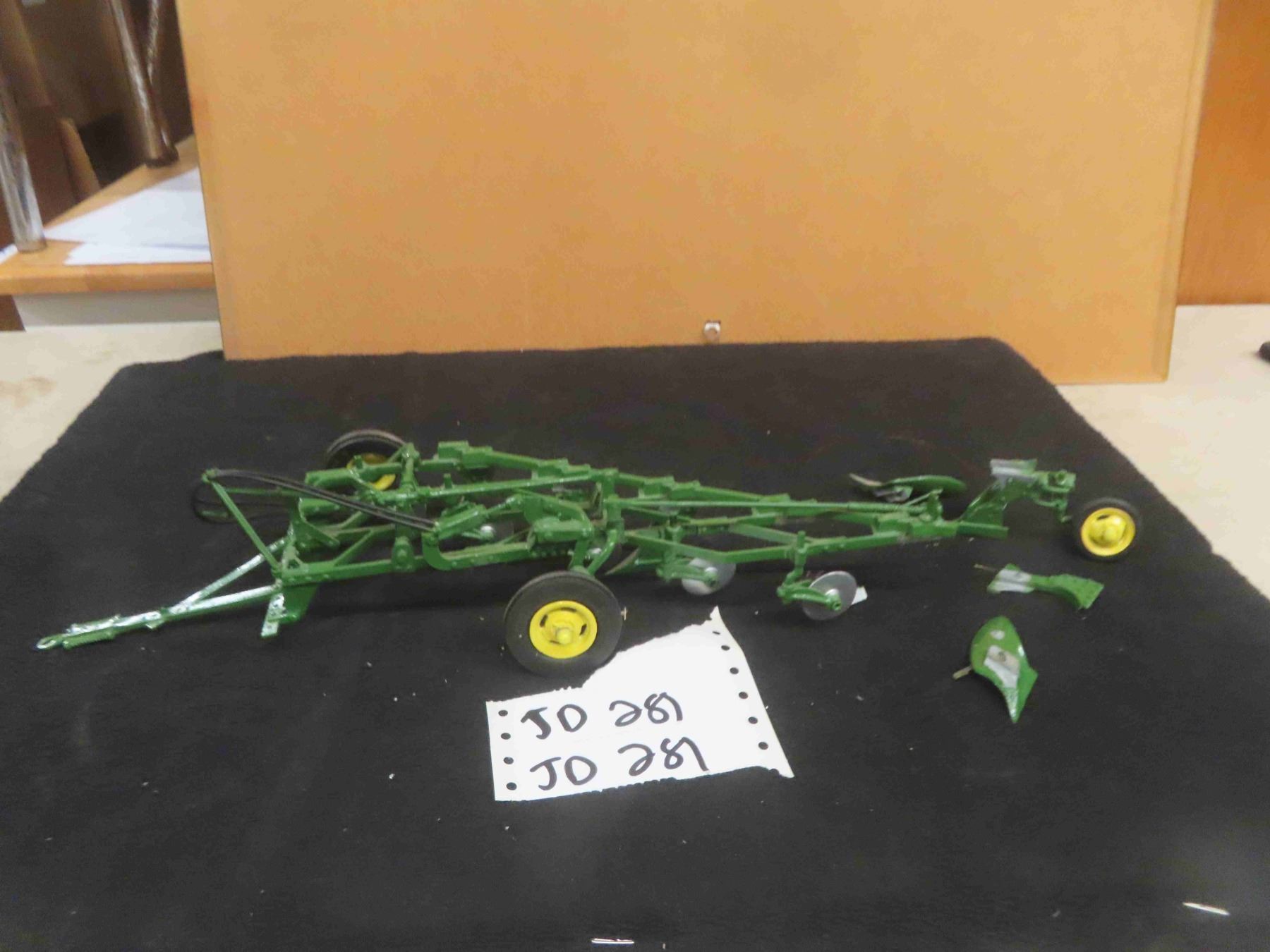John Deere S Bottom Plow with Cultivator - some pieces broke off, see pictures - Die Cast, No Box 16" Long