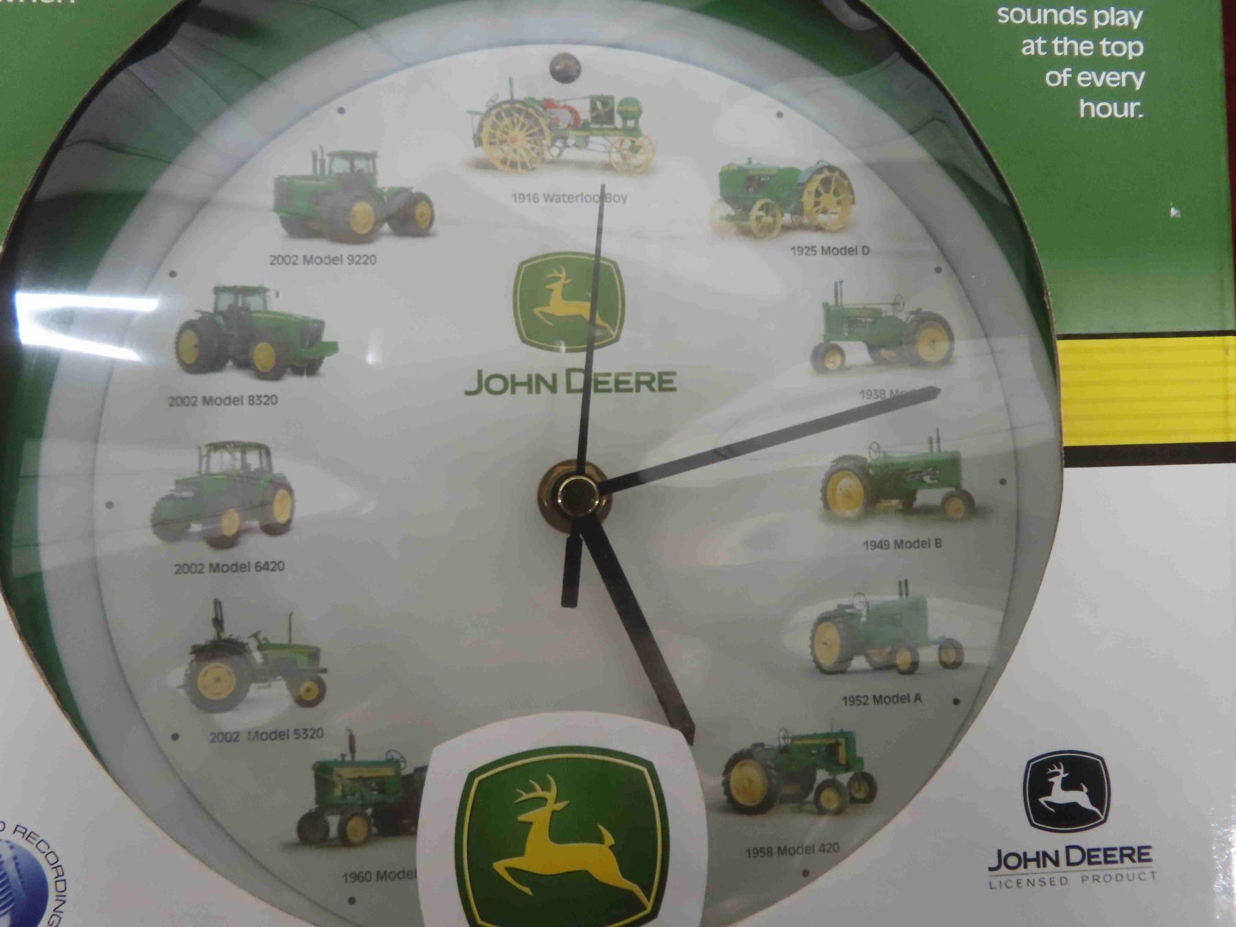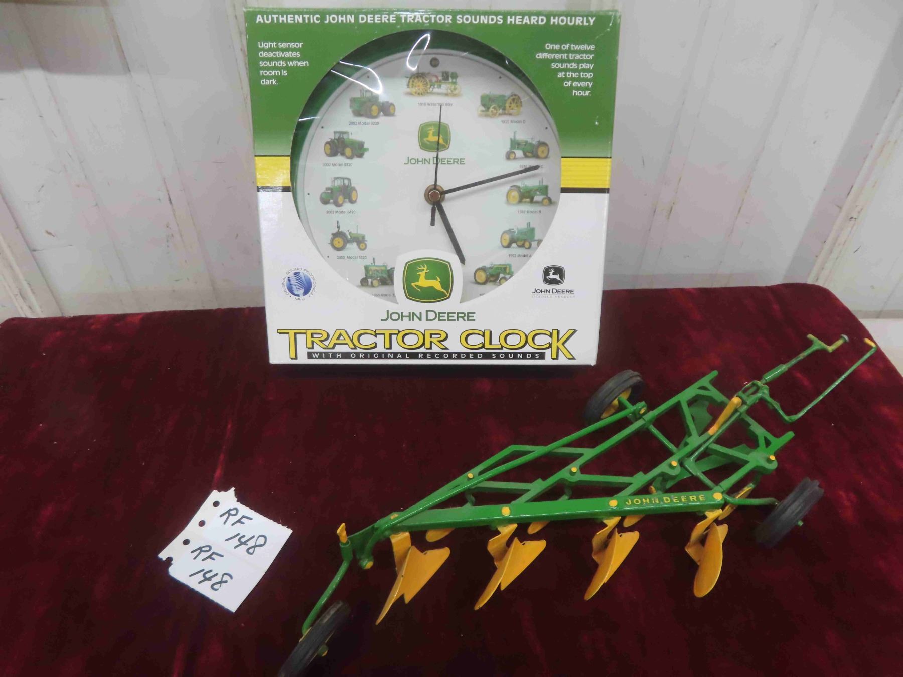 John Deere Steele 4 Furrough Plow , John Deere Wall Clock with Alarm - Alarm Sounds Like 12 Different John Deere Tractors