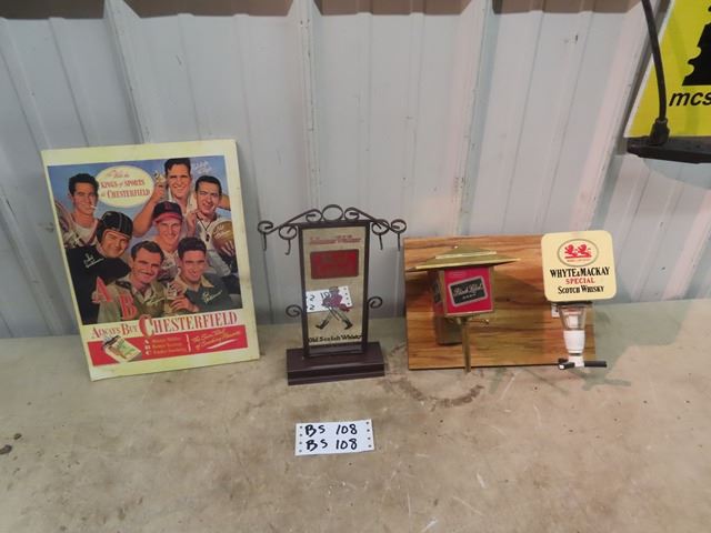 Johnny Walker Liquor Mixer Display, Black Label Jigger & Chesterfield Cig Adv 10" x 14"