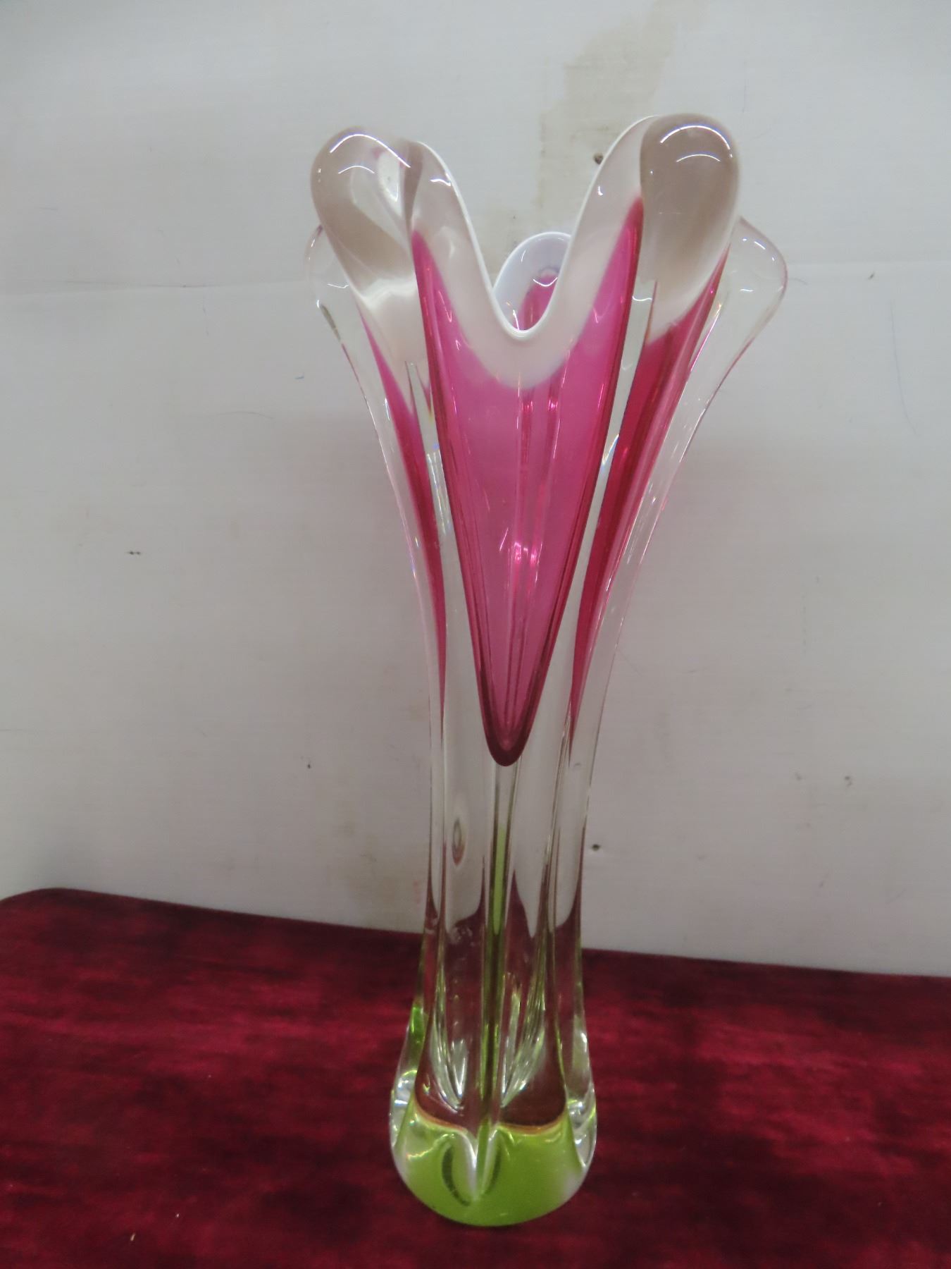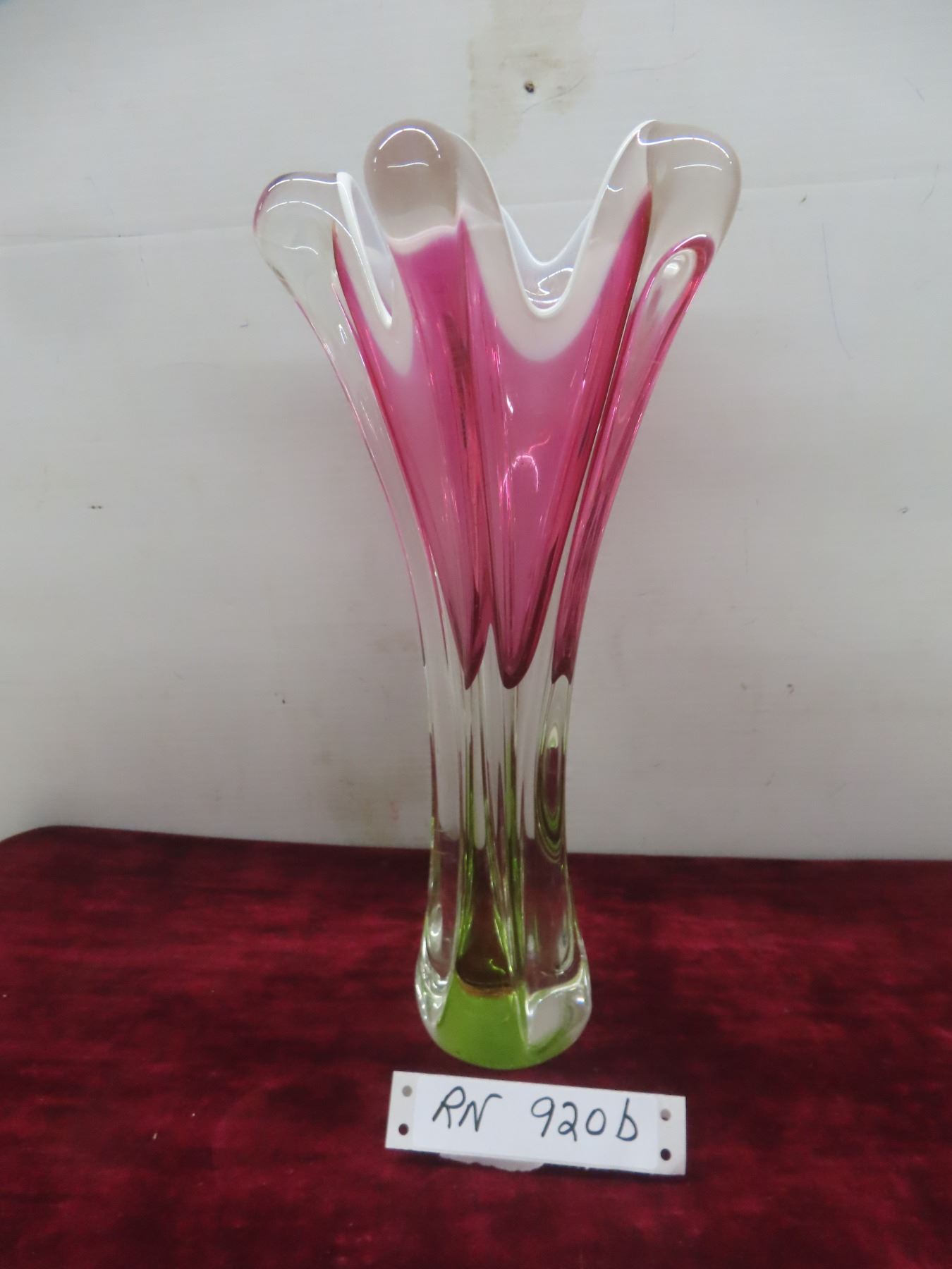 Joseph Josef Hospodka 1960/2 Sculptural Vase, Opalescent White Rim, 14 " Tall