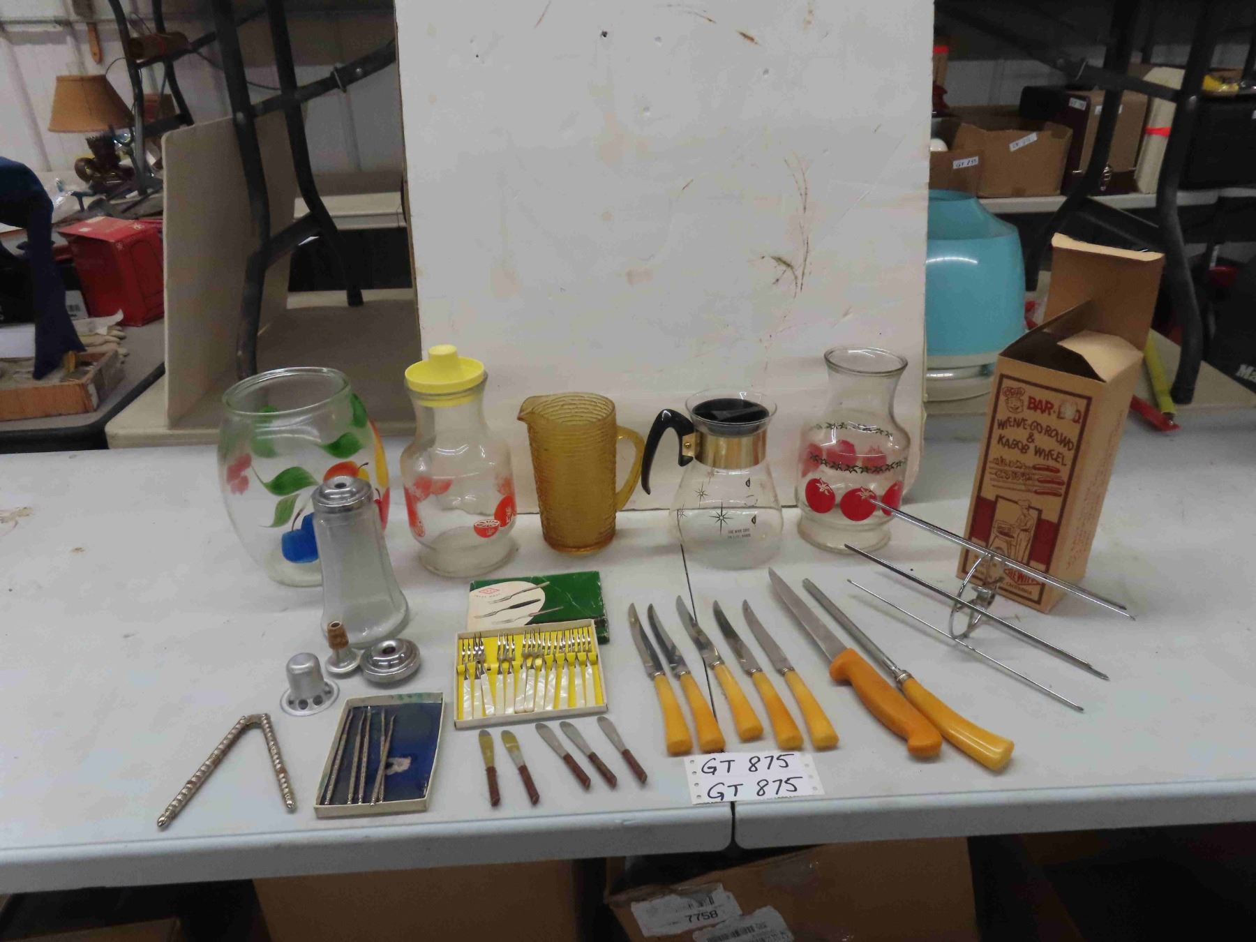 Juice Pitchers, Cocktail Forks, Kabob Wheel, Vintage Knives, plus more