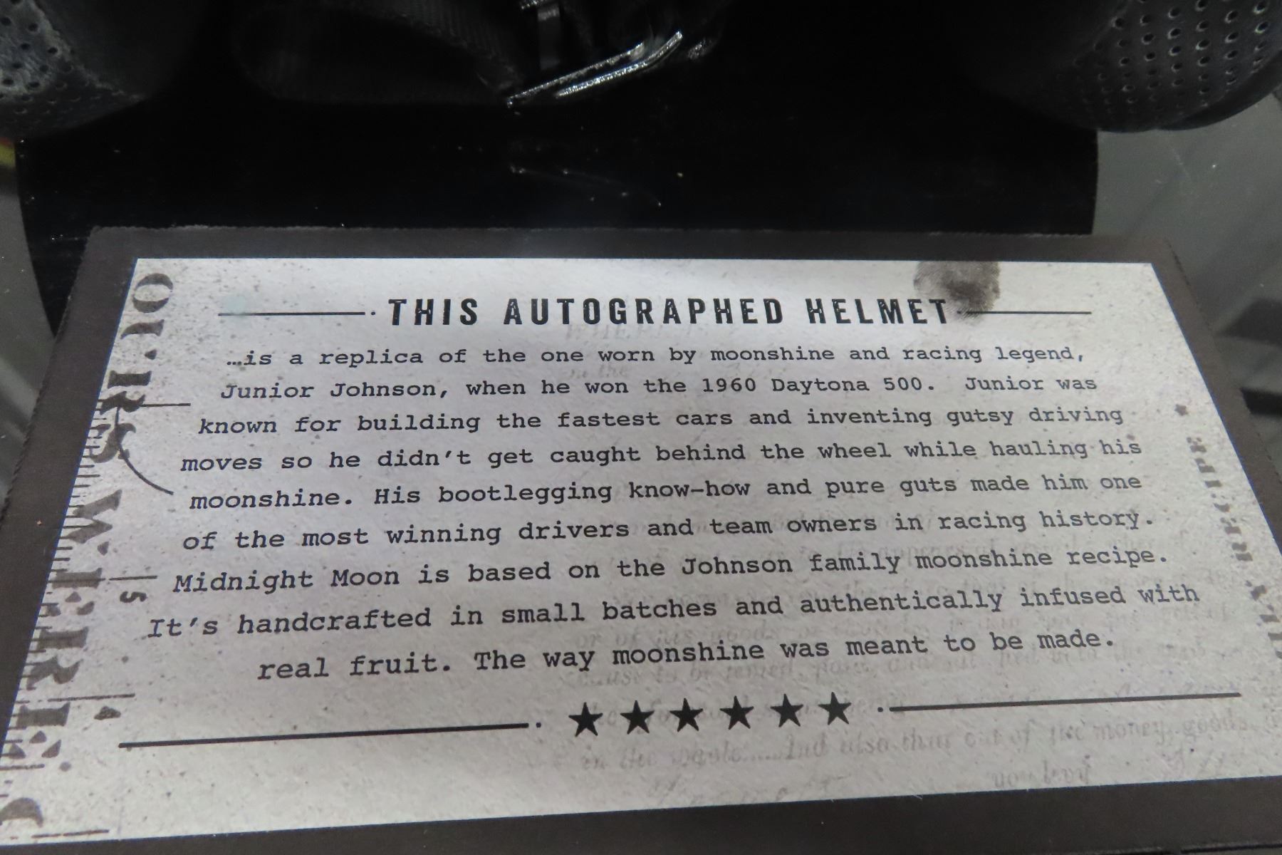 Junior Johnson Midnight Moonshine Autographed Replica Helmet in Display Case