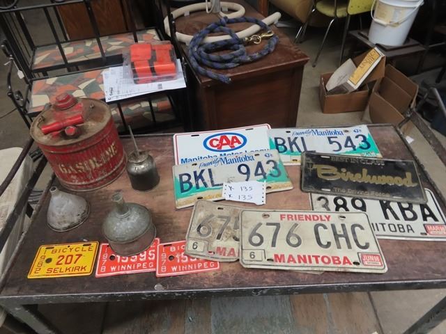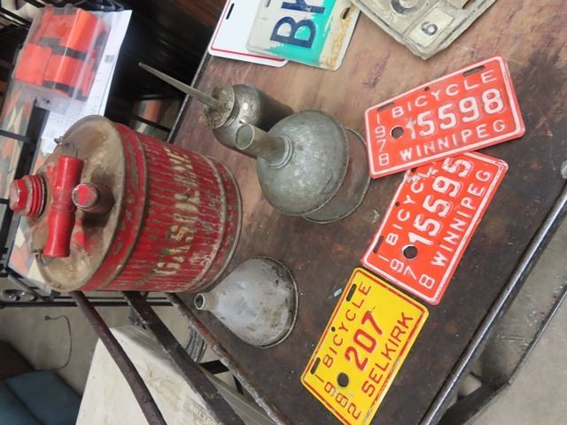 (K) LIcense Plates. Bicycle & Auto , Gas & Oil Cans