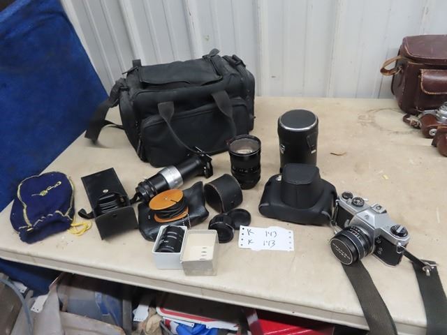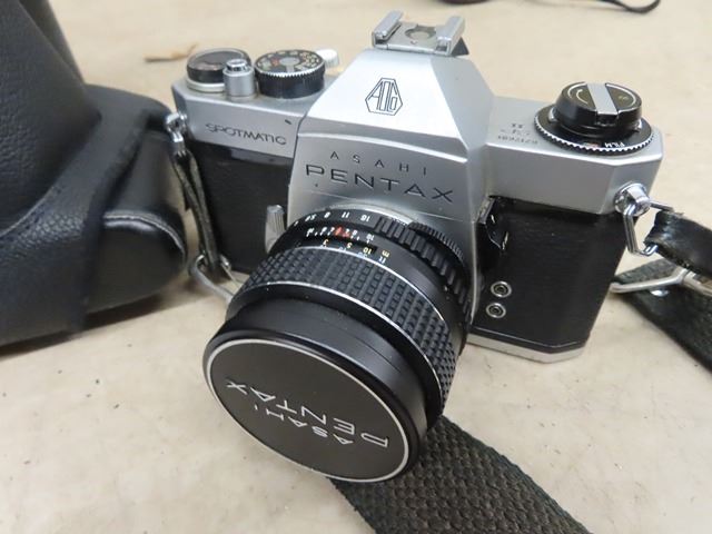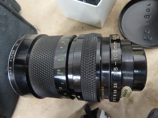 (K) Pentax Spotamatic, Extra Lenses, 1) 35-105mm Case & Extras, Vitomatic # Camera & Kodak Supermati