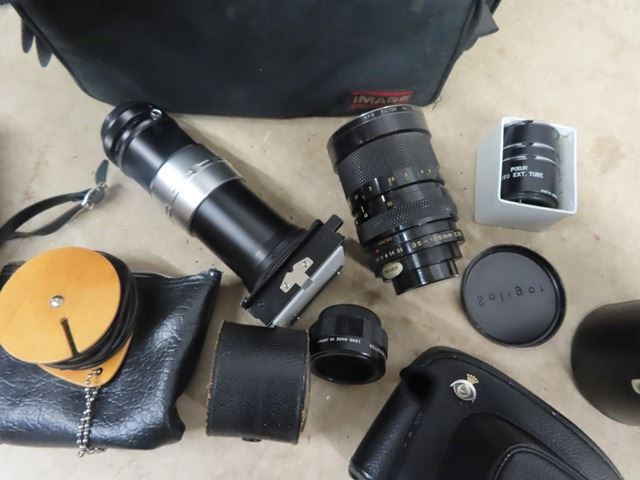 (K) Pentax Spotamatic, Extra Lenses, 1) 35-105mm Case & Extras, Vitomatic # Camera & Kodak Supermatic 500 Projector