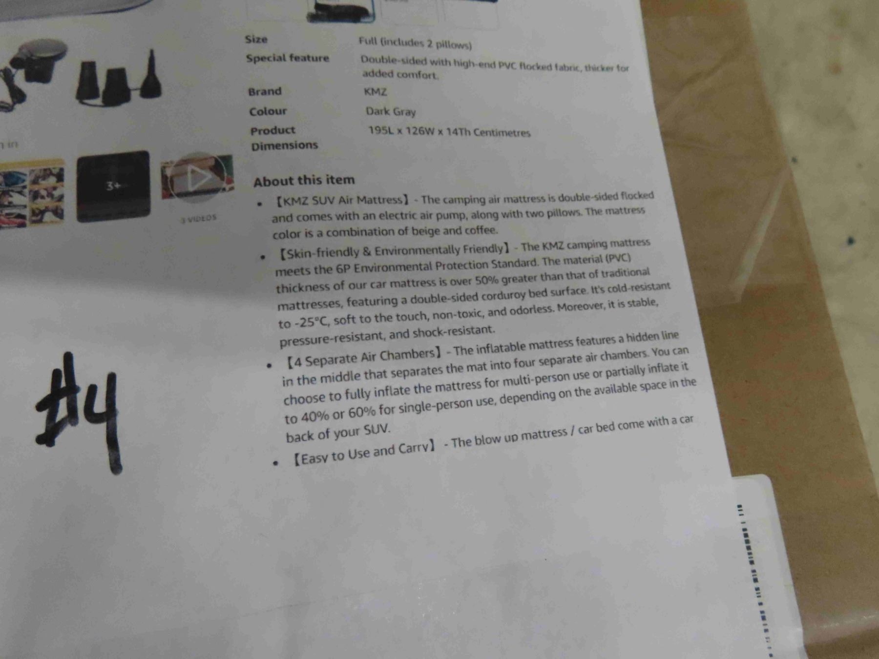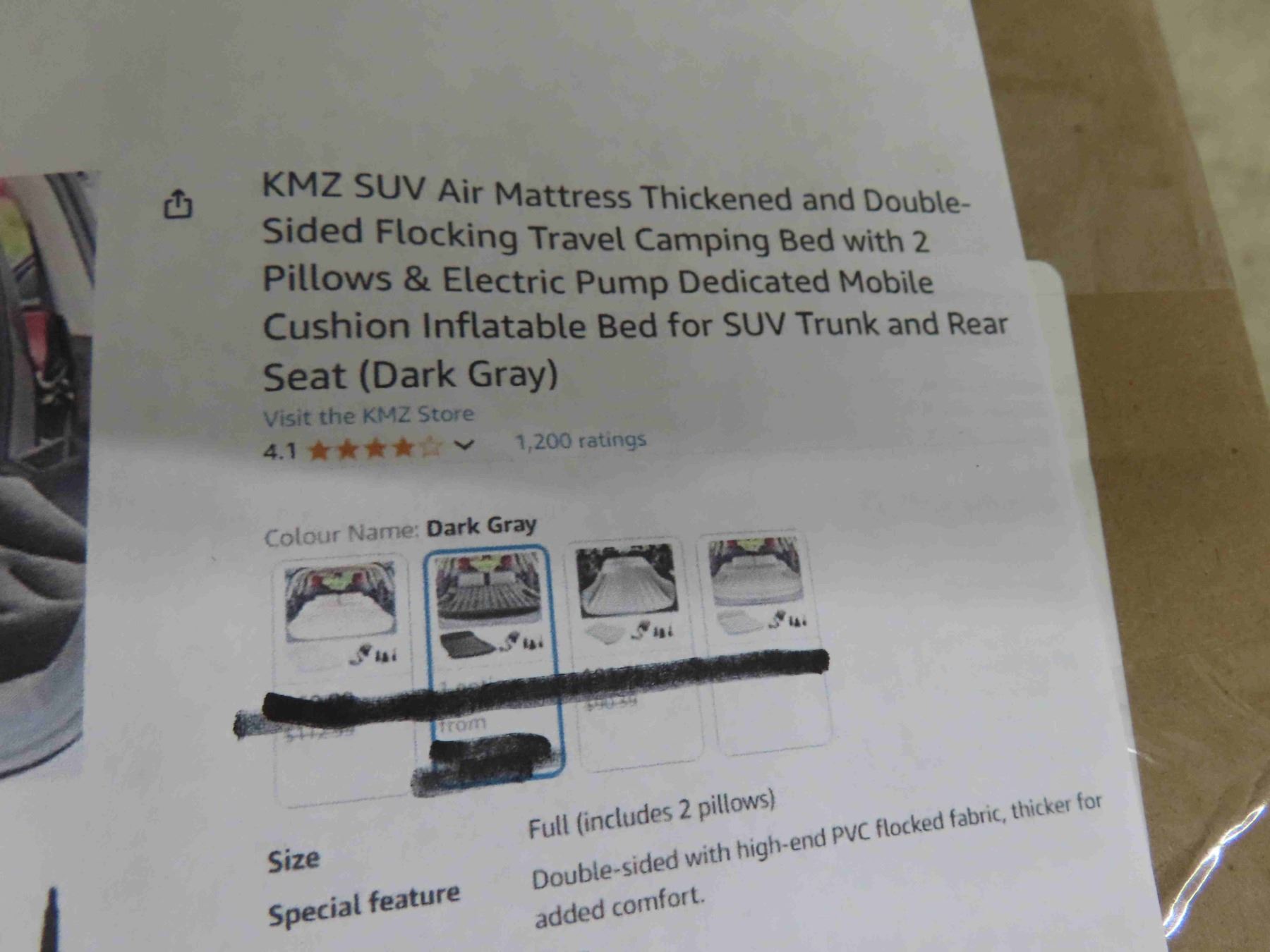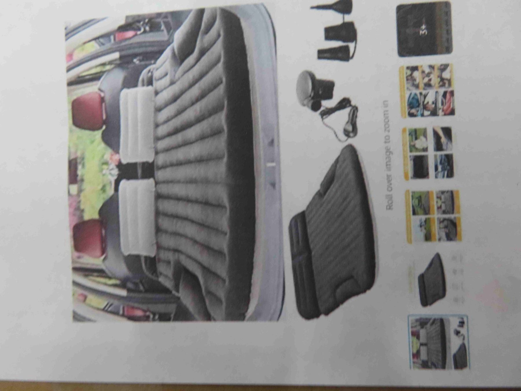 KMZ SUV Air Mattress Thickened and Double Sided Flocking Travel Camping Bed with 2 Pillows, Electric Pump Dedicated Mobile Cushion Inflatable Bed for SUV Trunk and Rear Seat (Dark Gray) - NEW OR STORE RETURN.