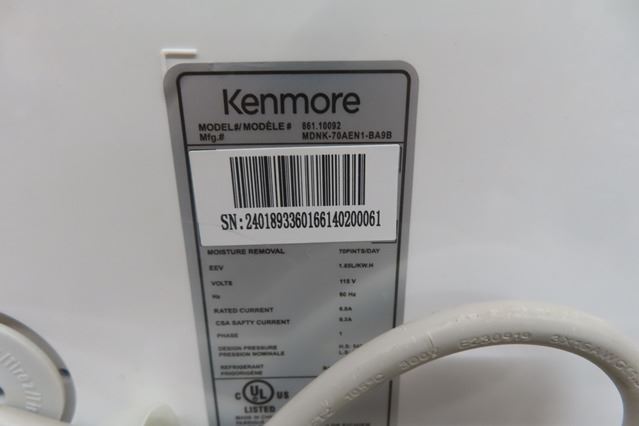 Kenmore Model 861.10092 Dehumidifier