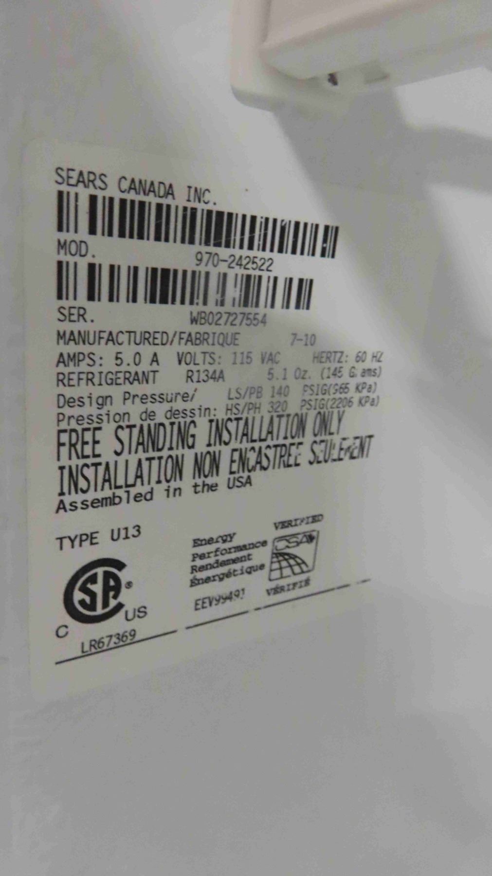 Kenmore Upright Freezer 26" x 28" x 59.5"