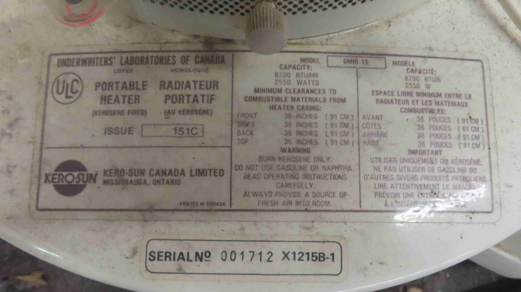 Kerosene Heater 8700 BTU/Hour 2550 Watts