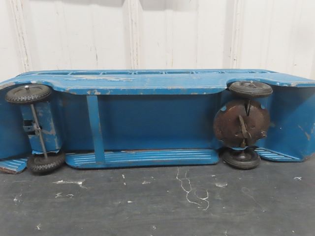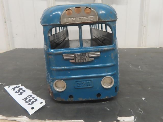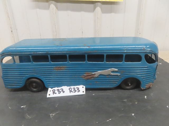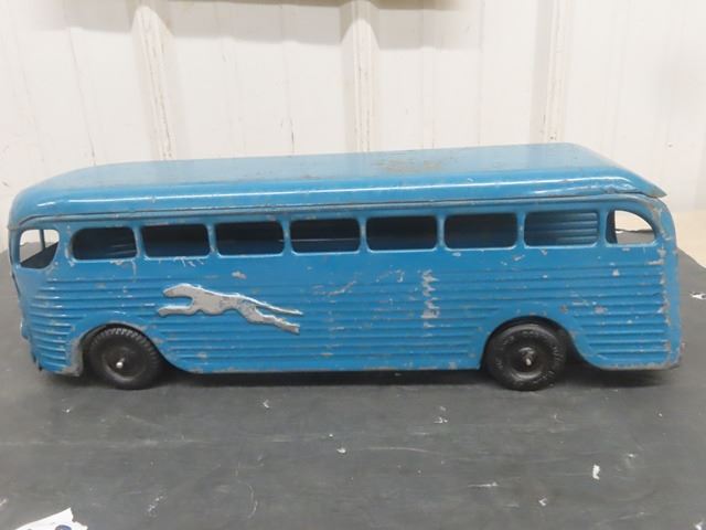 Keystone Windup Pressed Metal Greyhound Bus - Missing Rear Panel 5" x 5.5" x 18"