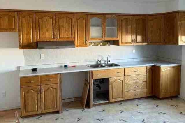 Kitchen Counter - Counter Top Measures 148'' x 26'' , Corner 34'' EVERYTHING IN PHOTO (Top Cupboards, Counter Top, Bottom Cupboard) **Disassembled and on Pallet for Easy Load Up**