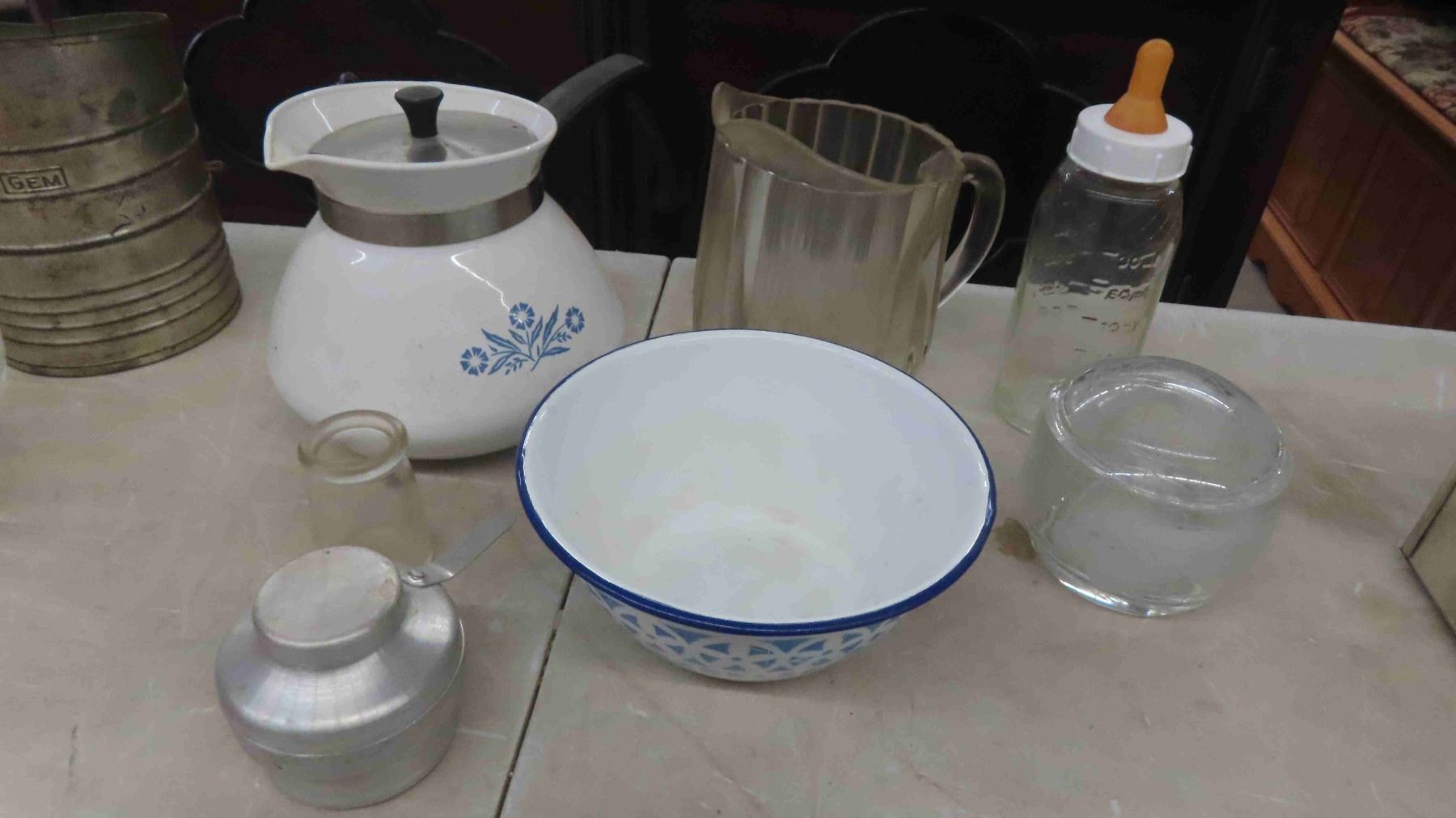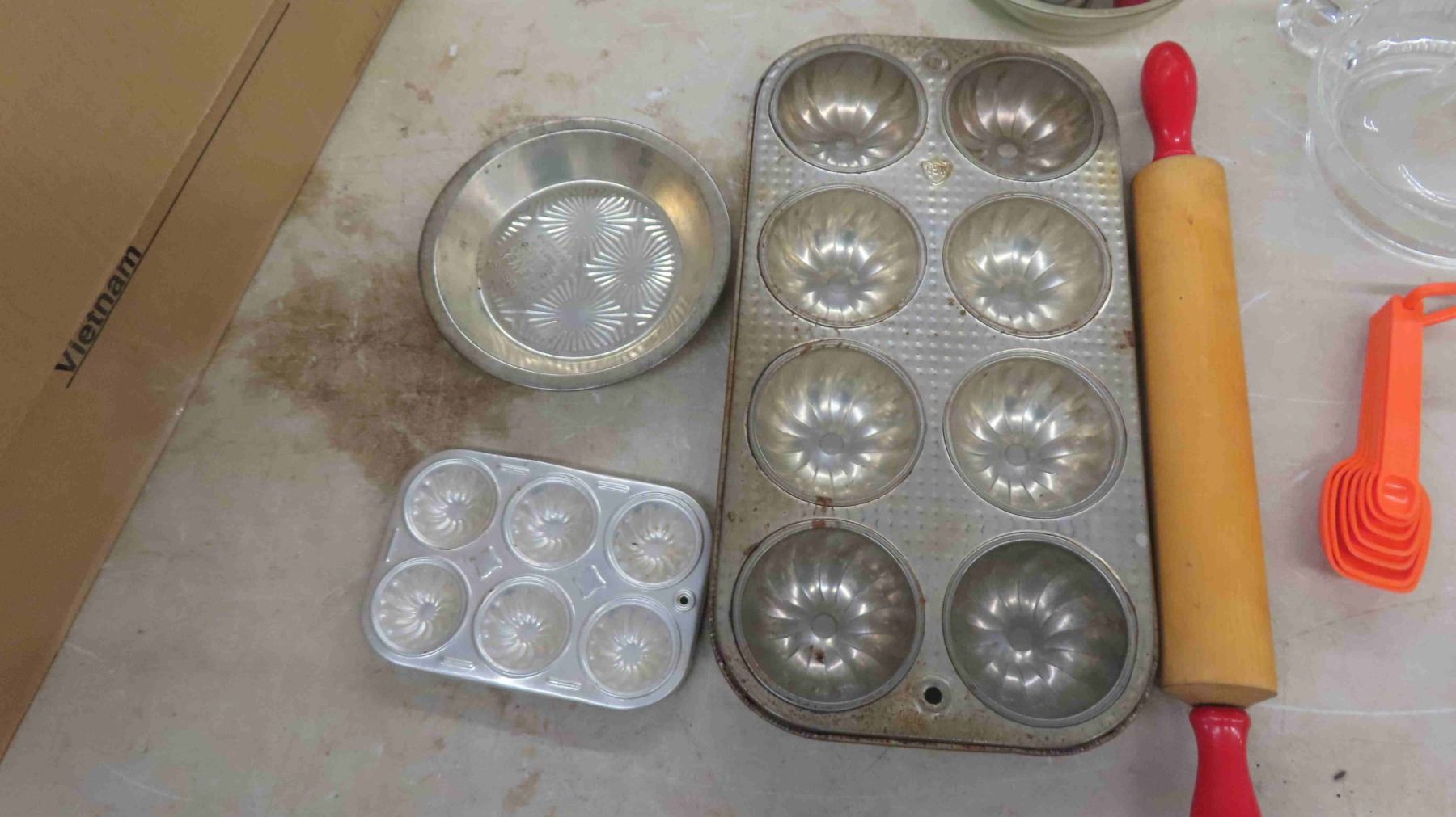 Kitchenware: Angel Food Pan , Sifter, Muffin Tin, Rolling Pin, Corningware