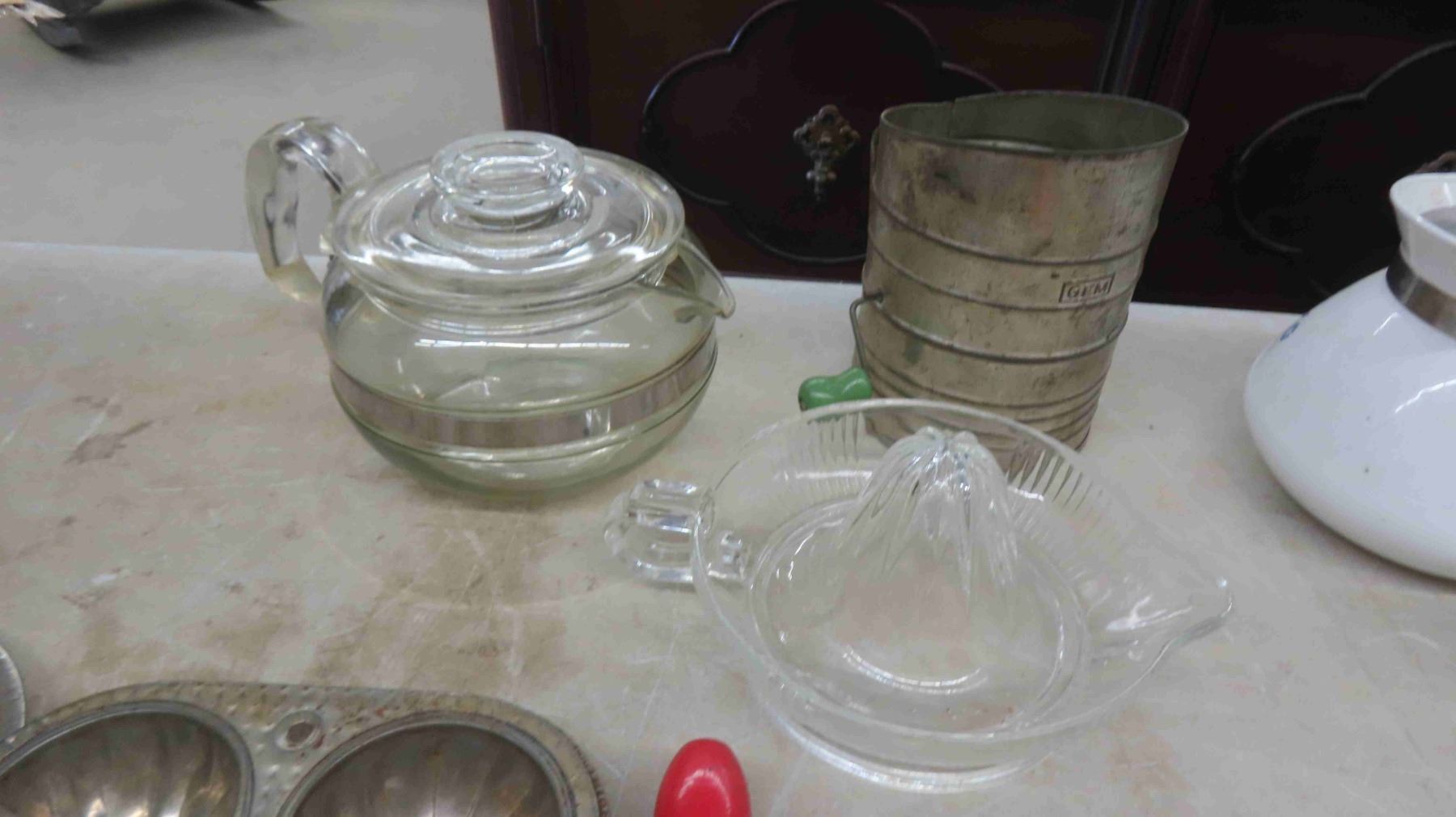 Kitchenware: Angel Food Pan , Sifter, Muffin Tin, Rolling Pin, Corningware Tea Pot & More