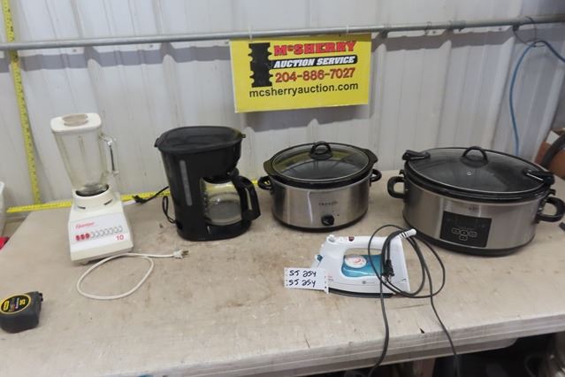 Kithcen Appliances ; Osterizer Blender, 2 Crock Pots, Master Chef Coffee, Sun Beam Iron