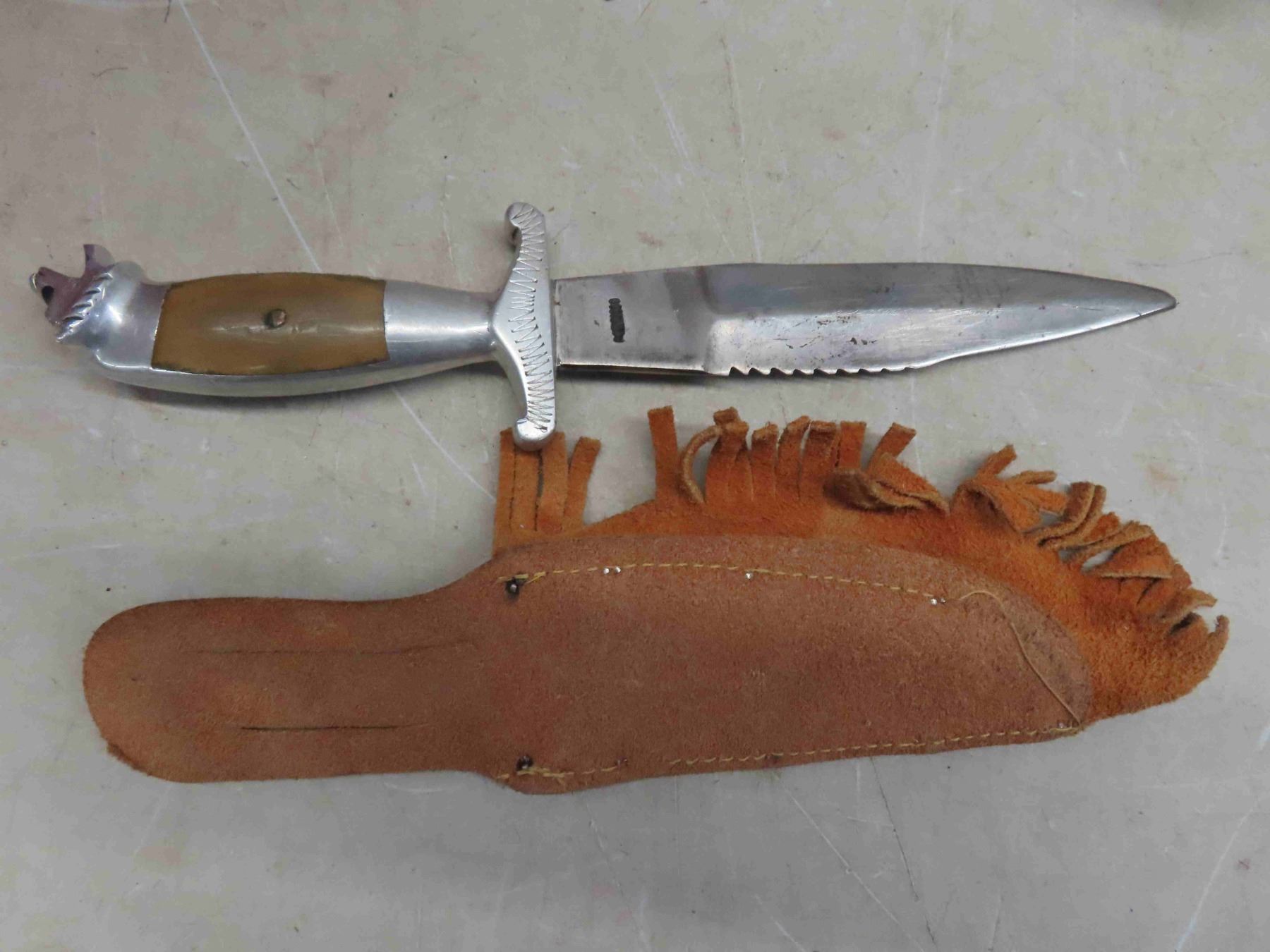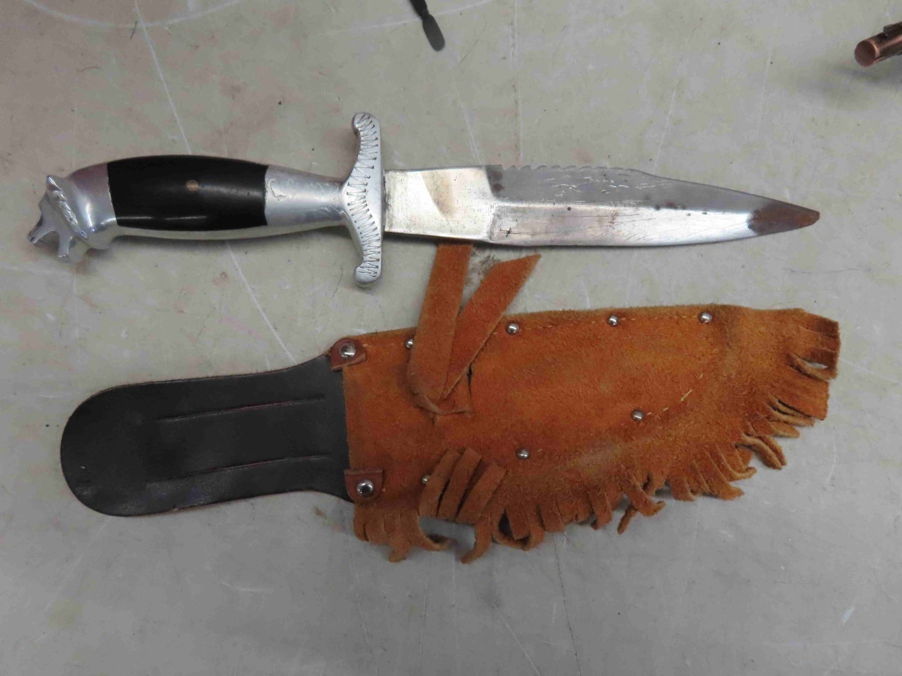 Knife with Sheath, Aluminum Tray, Camping Dish, Vintage
