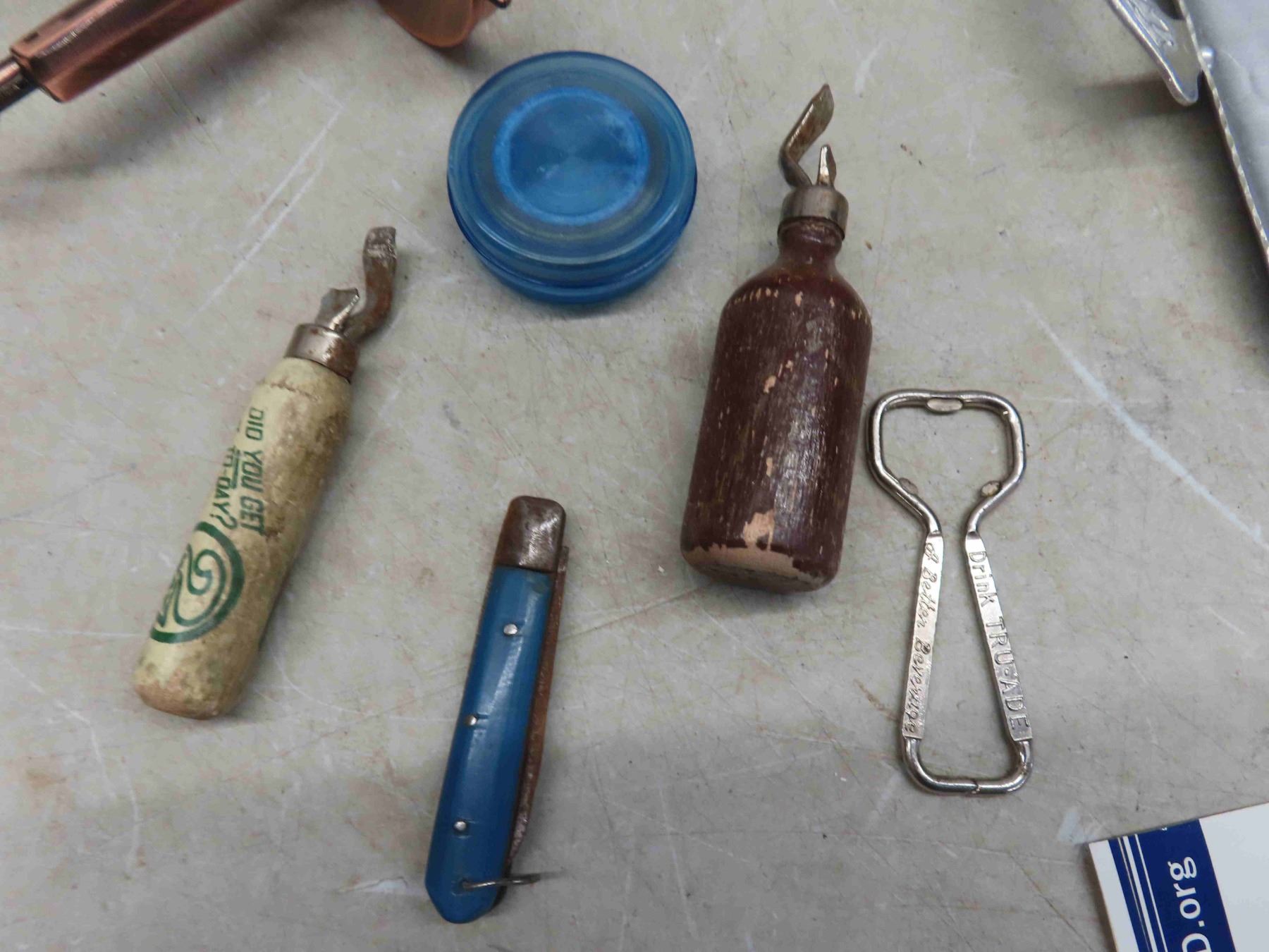 Knife with Sheath, Aluminum Tray, Camping Dish, Vintage Bottle Openers & More
