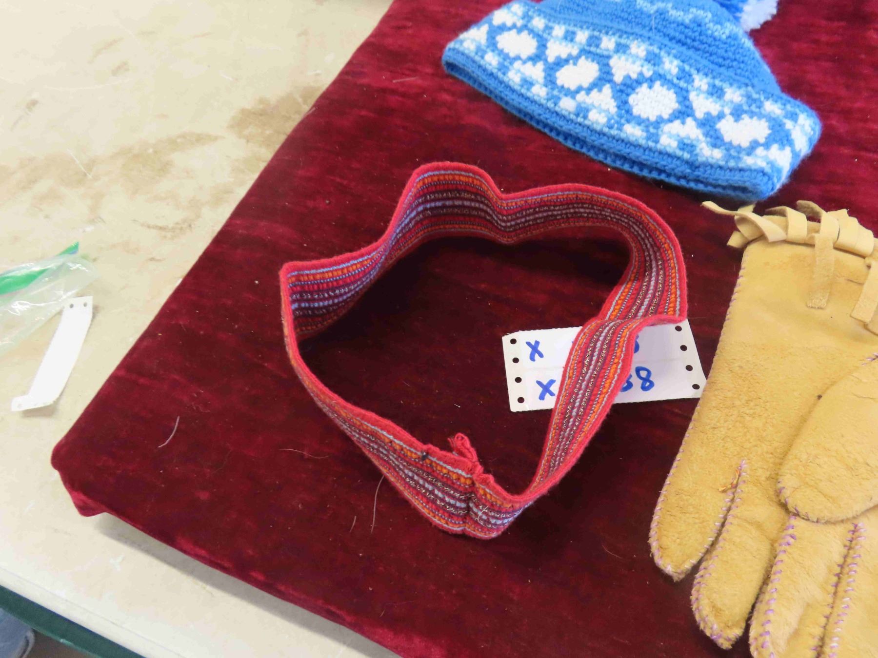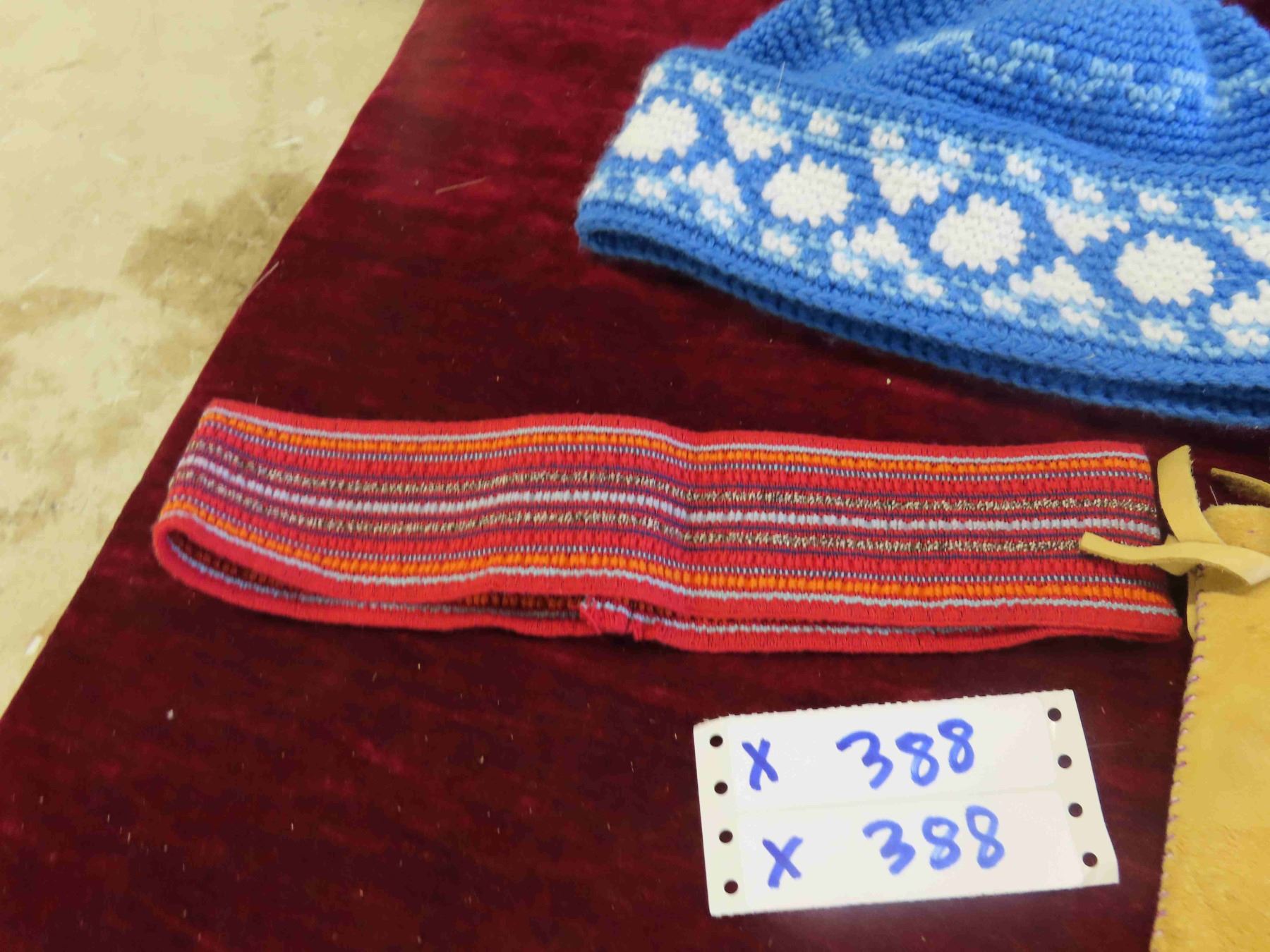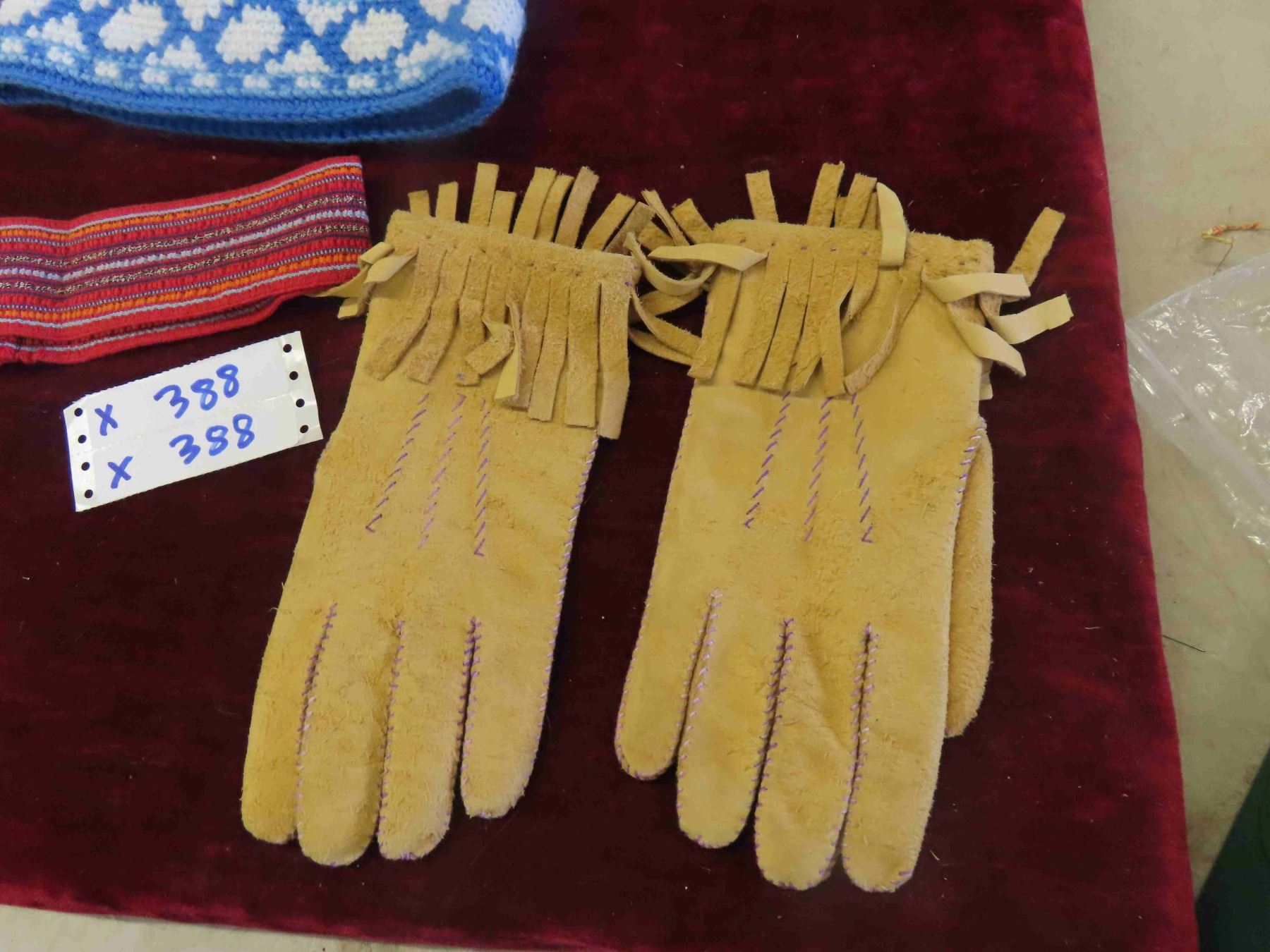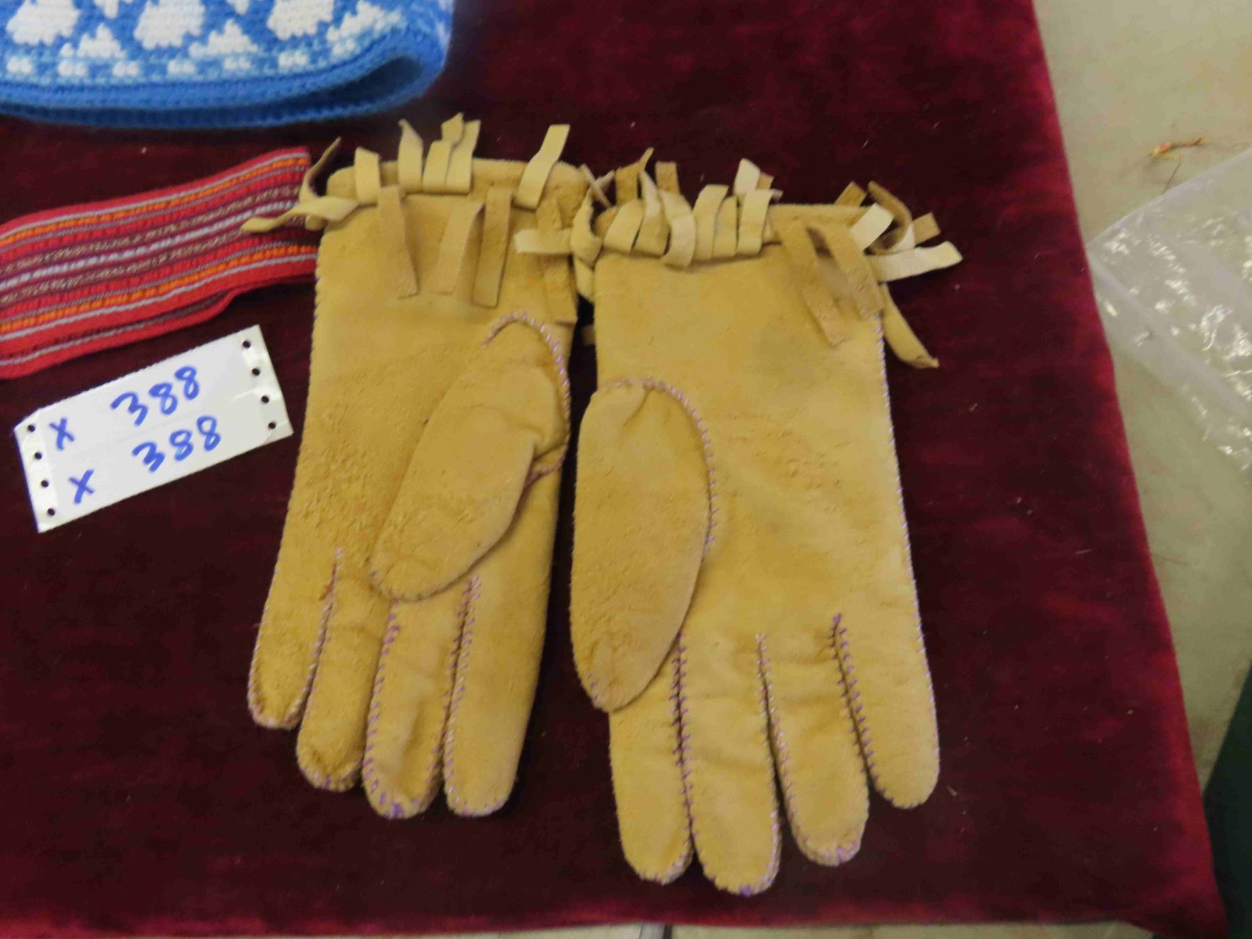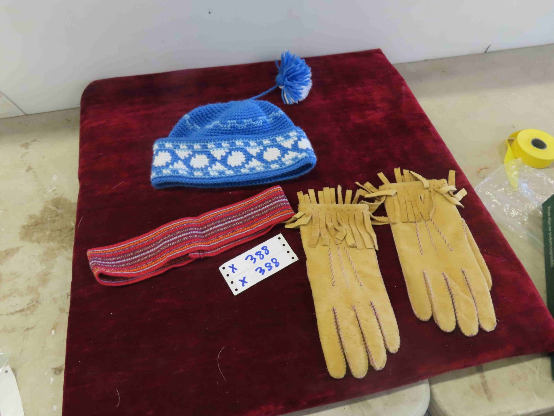 Knitted Touque, Sash, Leather Hide Gloves - All Hand Crafted