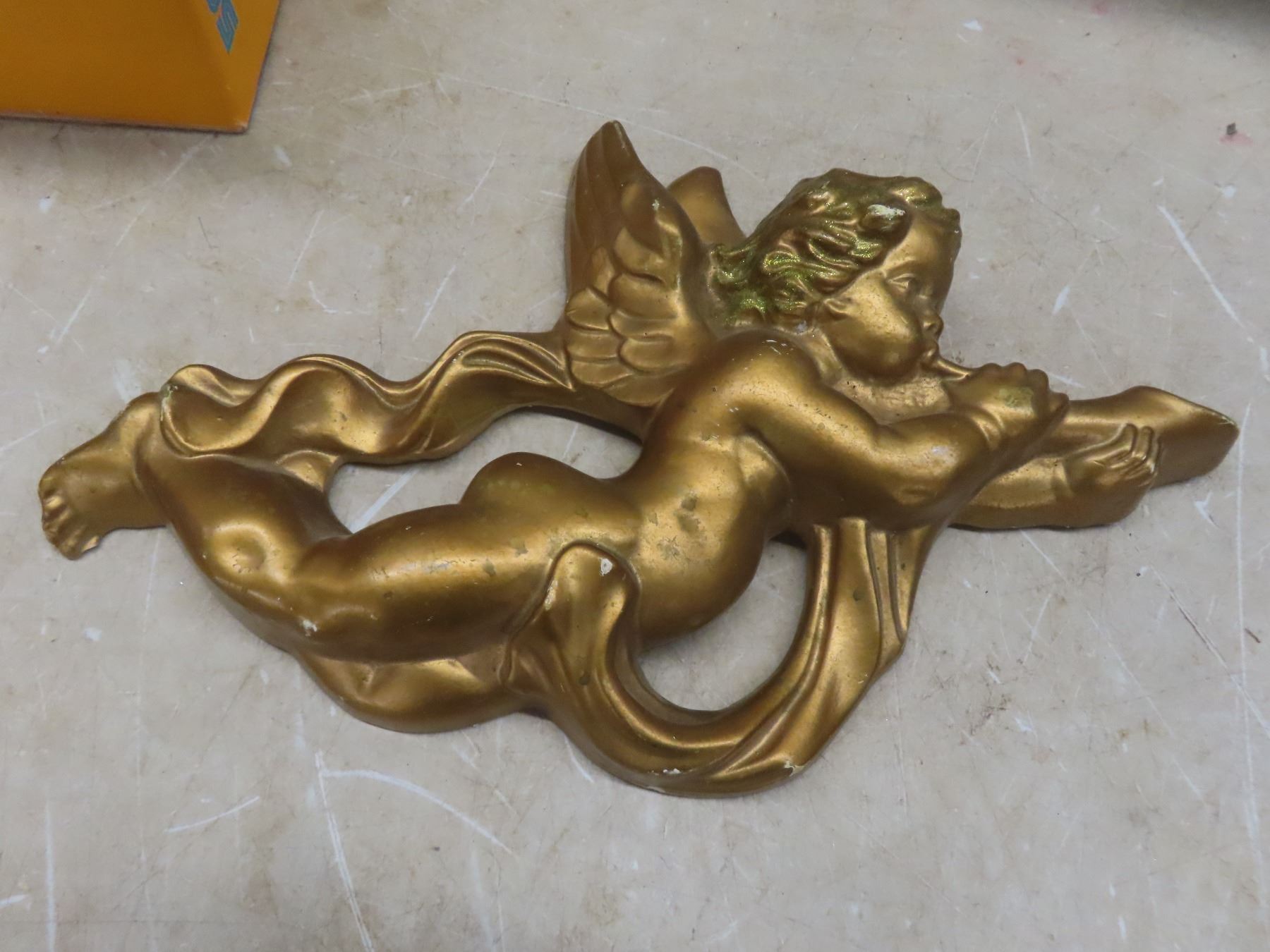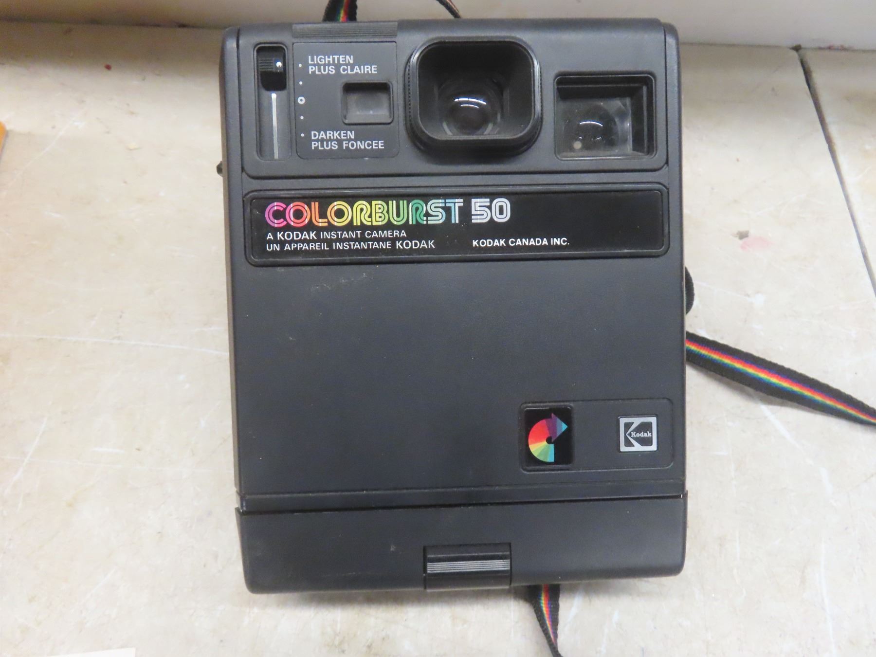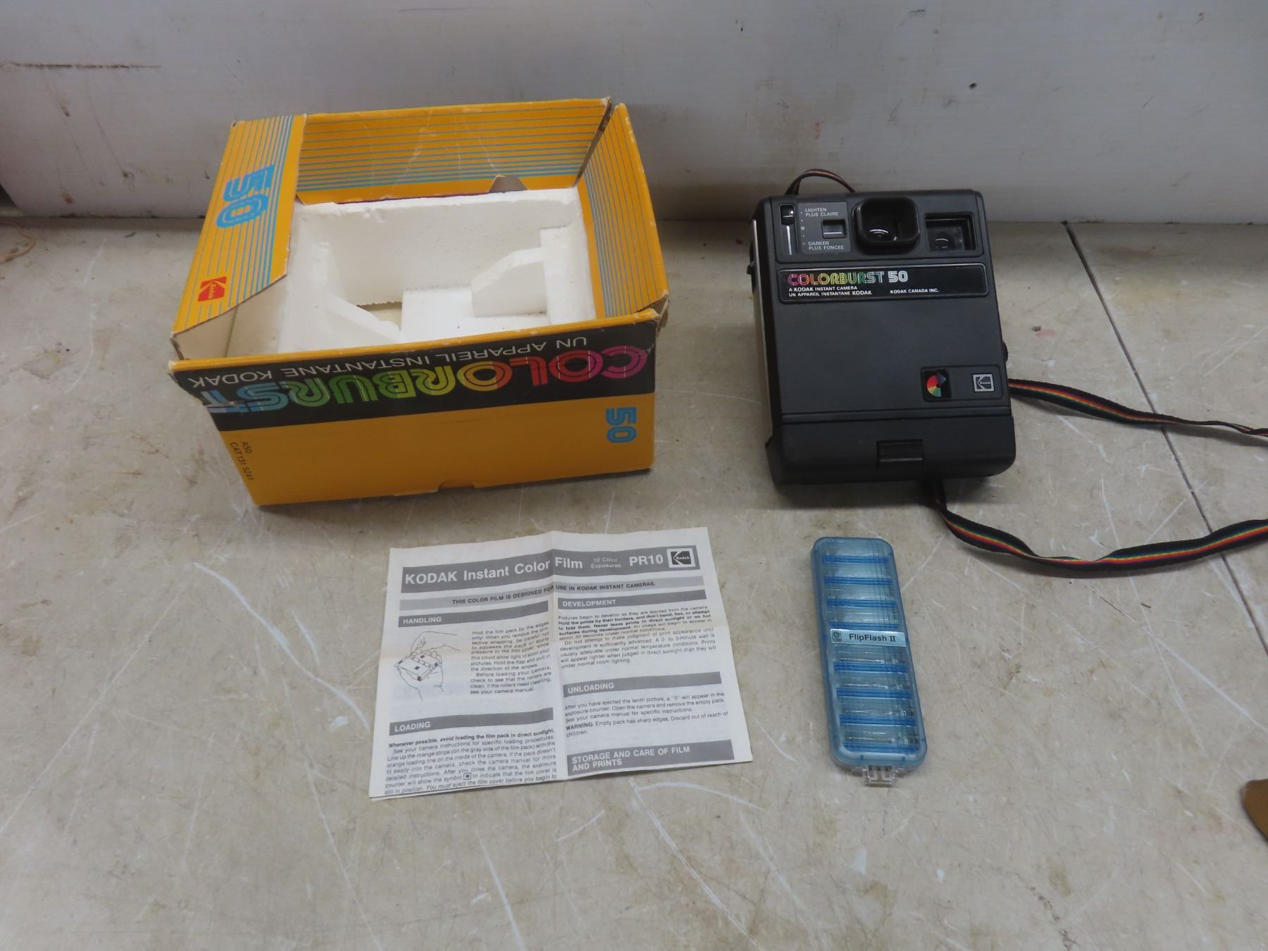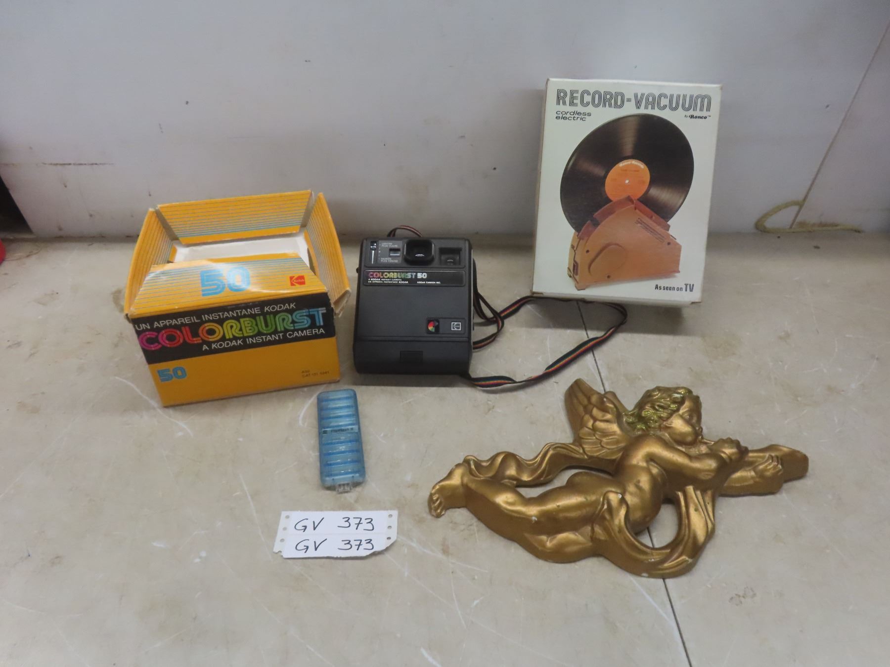 Kodak Colorburst 50 Instant Camera With Box And Flashcubes; Record - Vacuum; And A Chalkware Angel Wall Plaque.