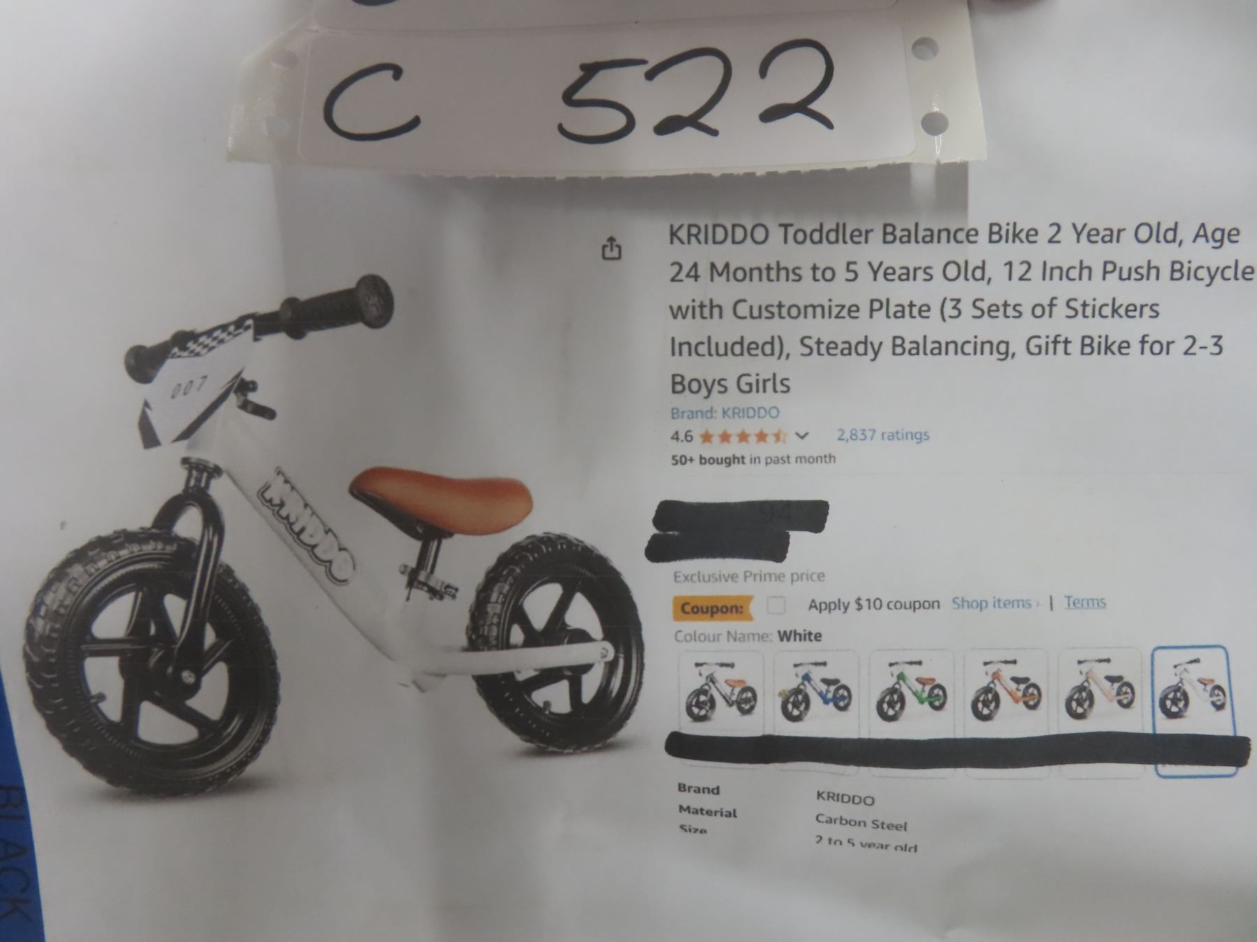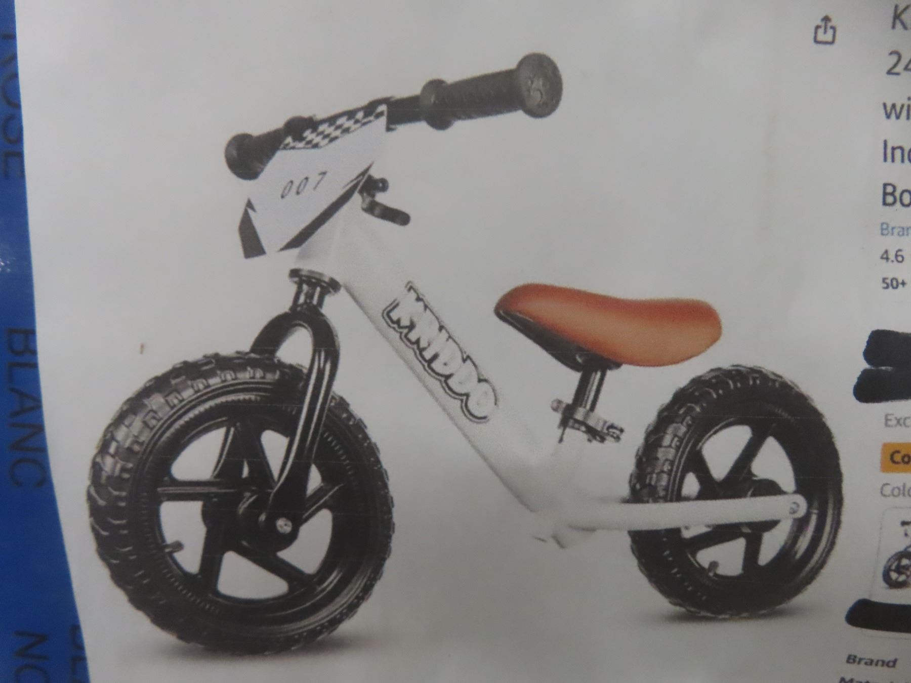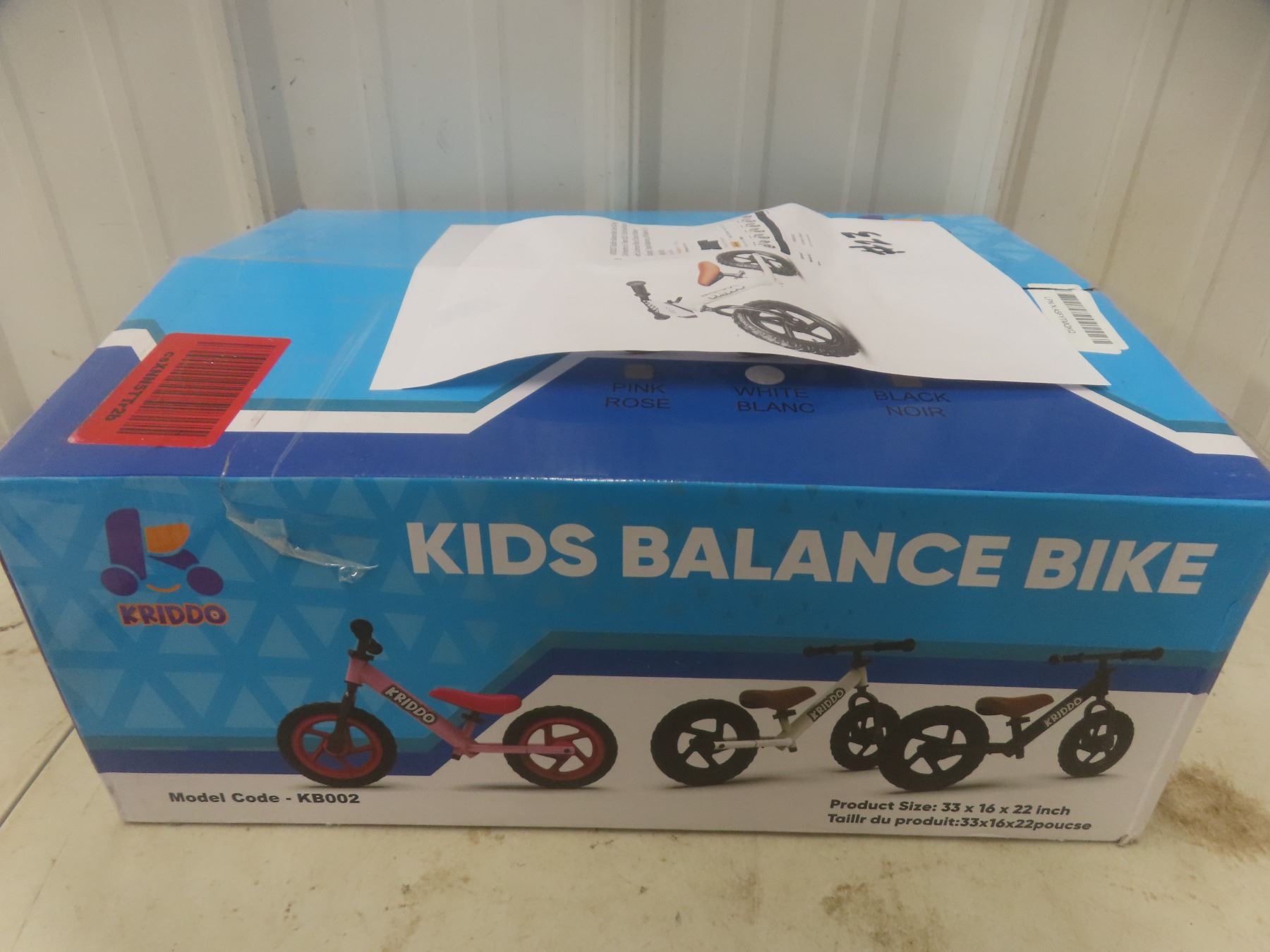 Kriddo Toddler Balance Bike 2 Year Old, Age 24 Months to 5 Years Old, 12 Inch Push Bicycle with Customize Plate (3 Sets of Stickers Included) Steady Balancing, Gift Bike for 2-3 Boys Girls White