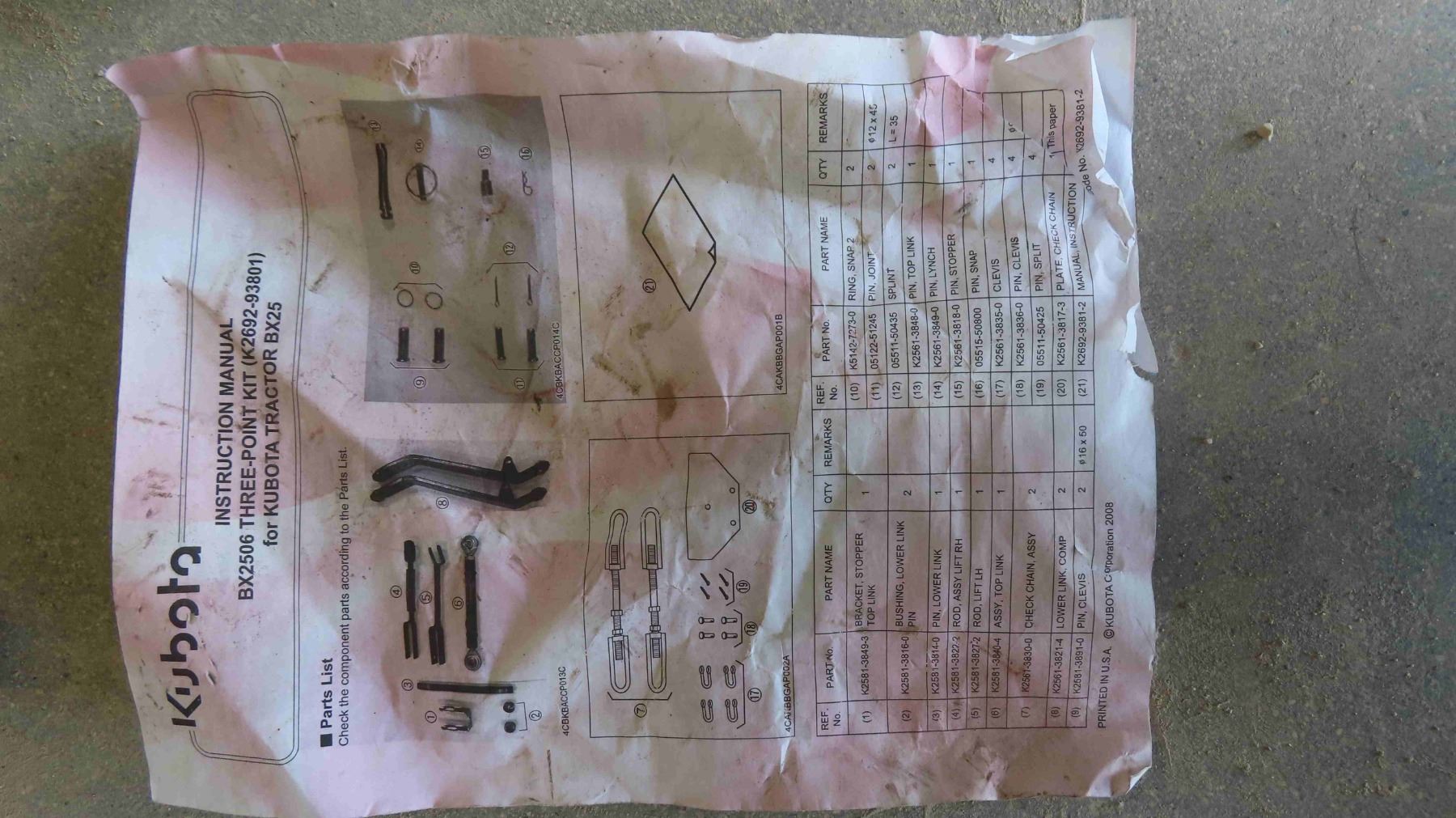 Kubota 3 Point Hitch Kit
