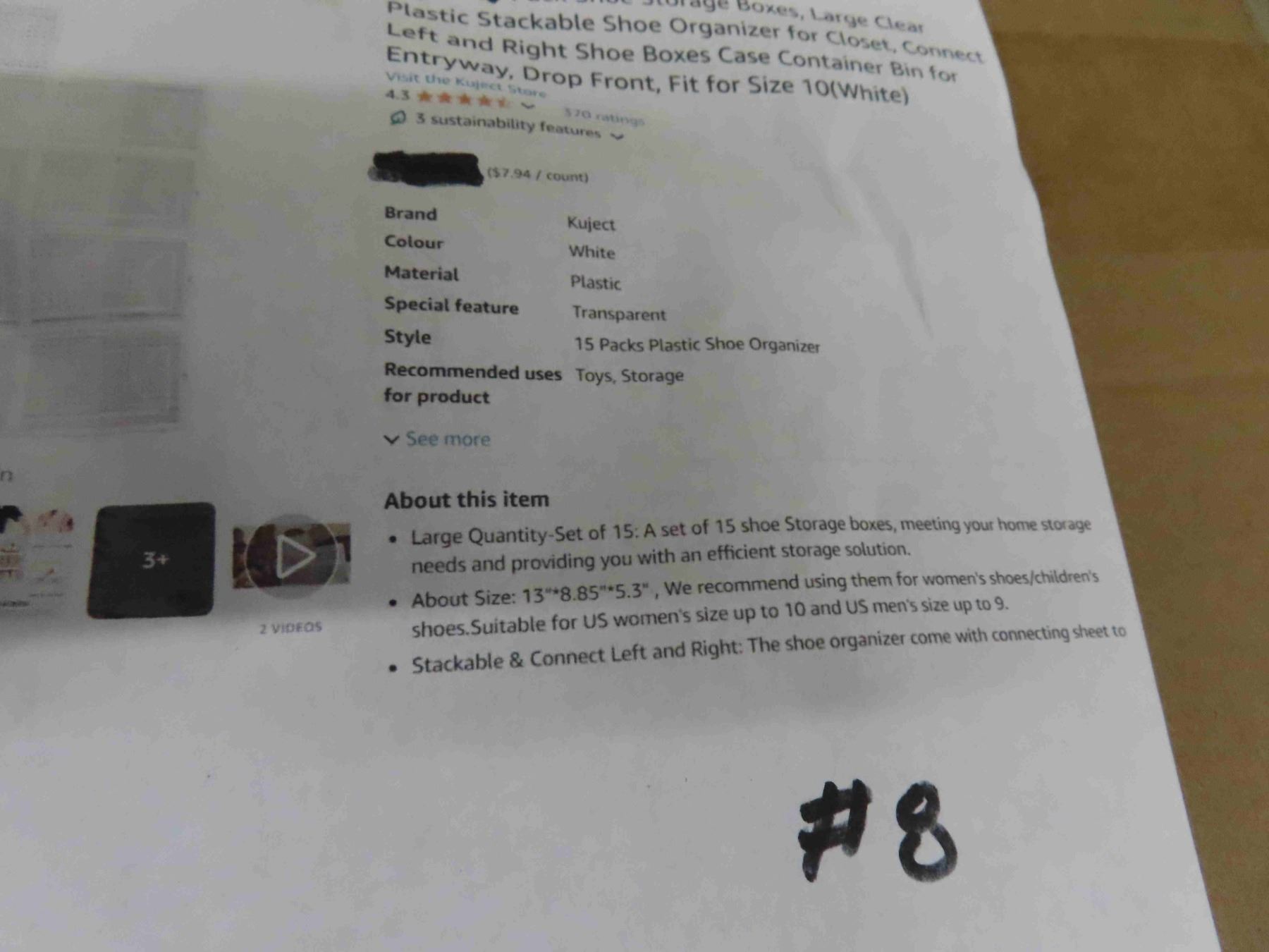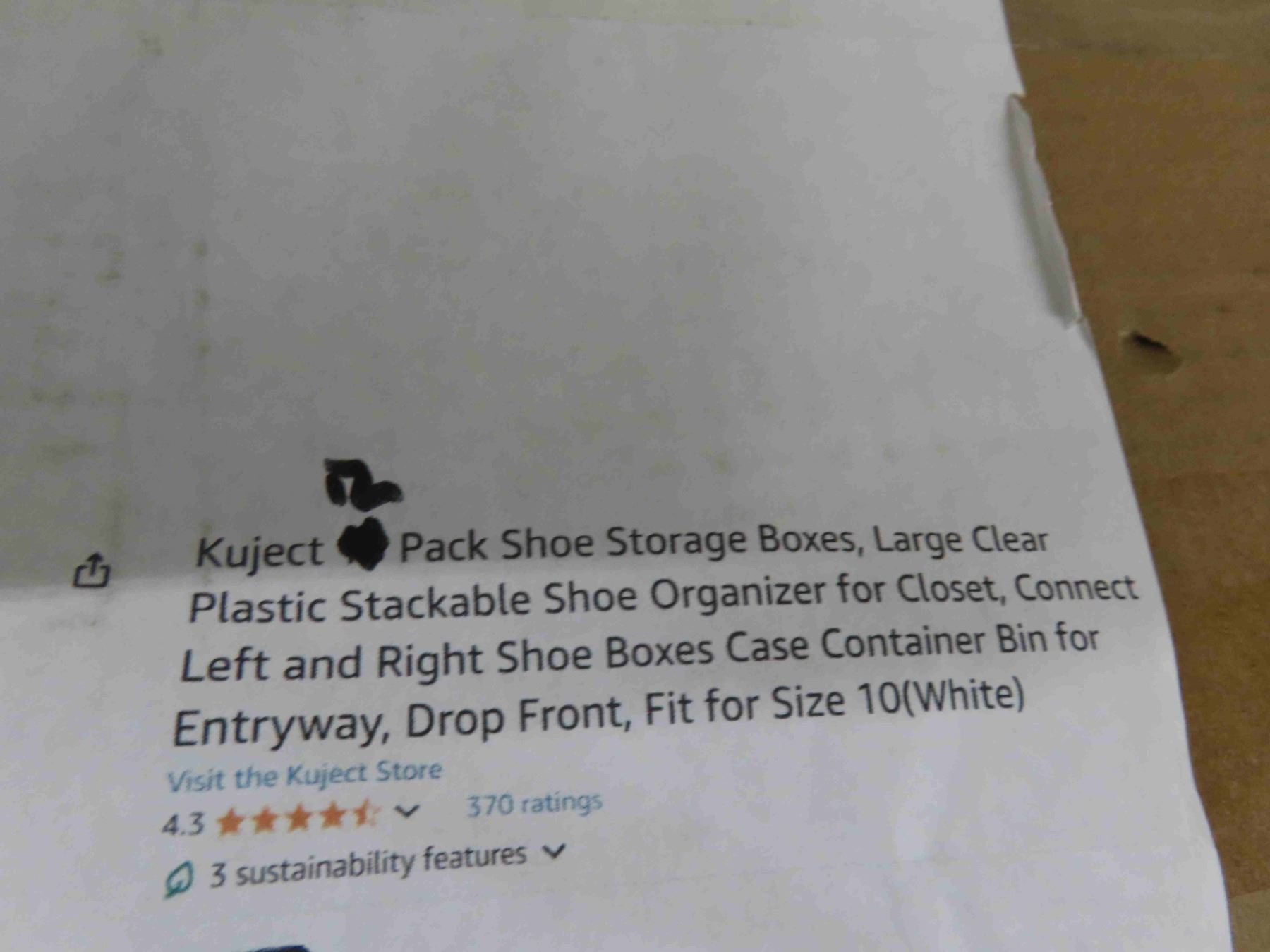 Kuject 12 Pack Shoe Storage Boxes, Large Clear Plastic Stackable Shoe Organizer for Closet, Connect Left and Right Shoe Boxes Case Container Bin for Entryway , Drop Front, Fit for Size 10(White) - NEW OR STORE RETURN.
