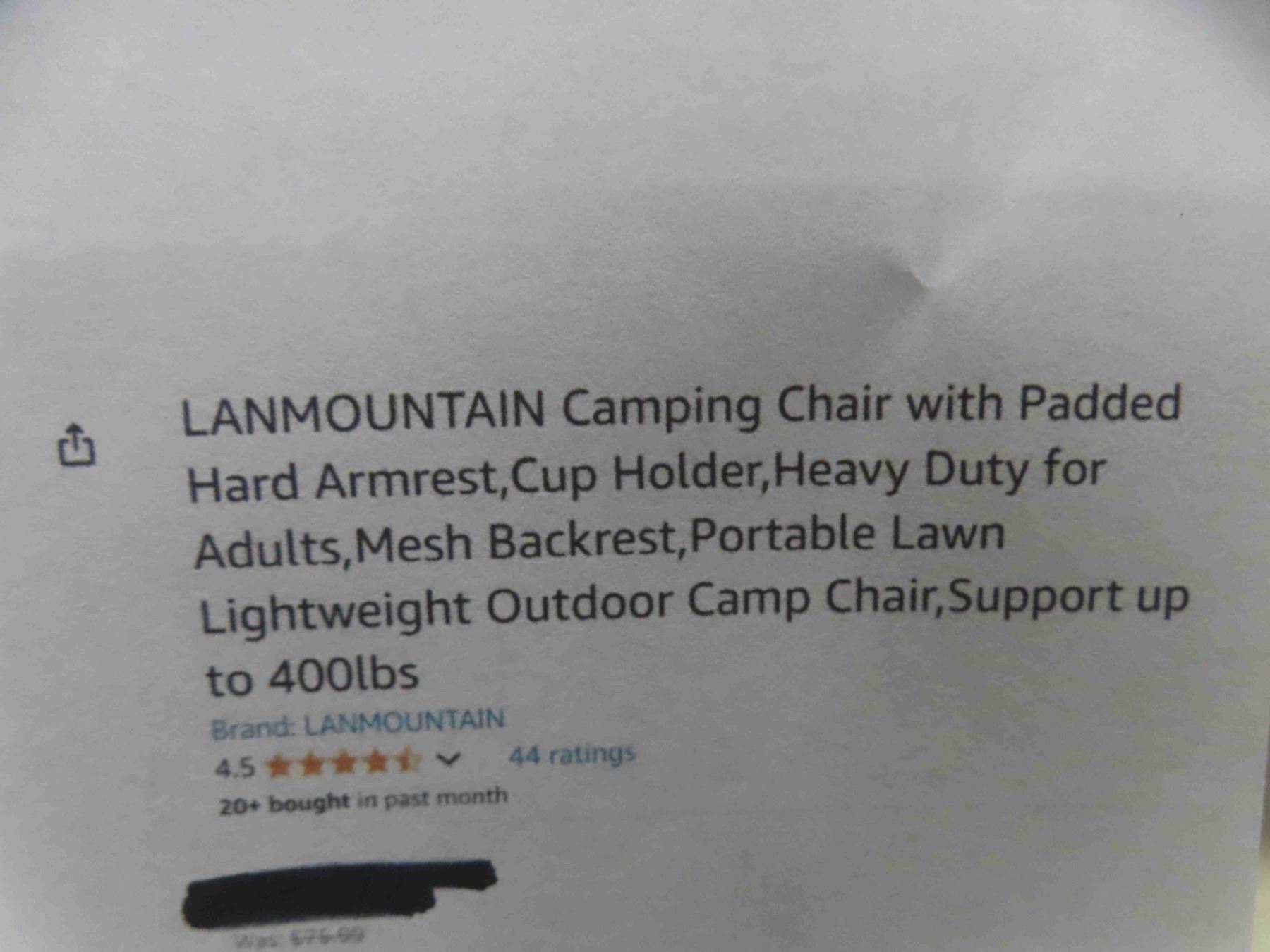 LANMOUNTIAN camping chair with padded hard armrest, cup holder, heavy duty for adults, mesh backrest, portable lawn lightweight outdoor camp chair, support up to 400 LBS