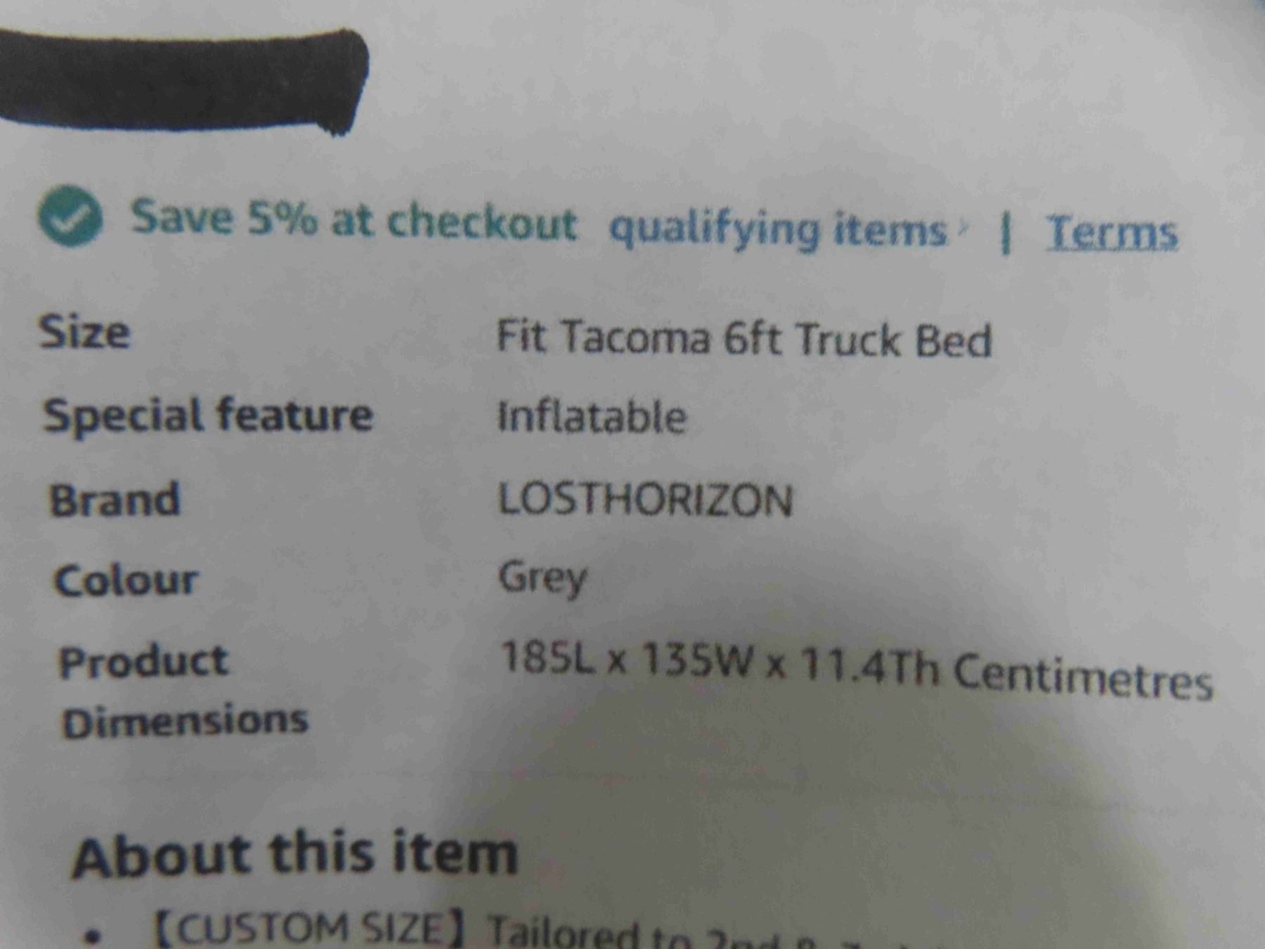 LOSTHORIZON Tacoma Truck Bed Mattress, Camping Sleeping Pad with Foam, Fits 6ft Long-Bed, 4.5" Thick, with Carry Bag - New or Store Return