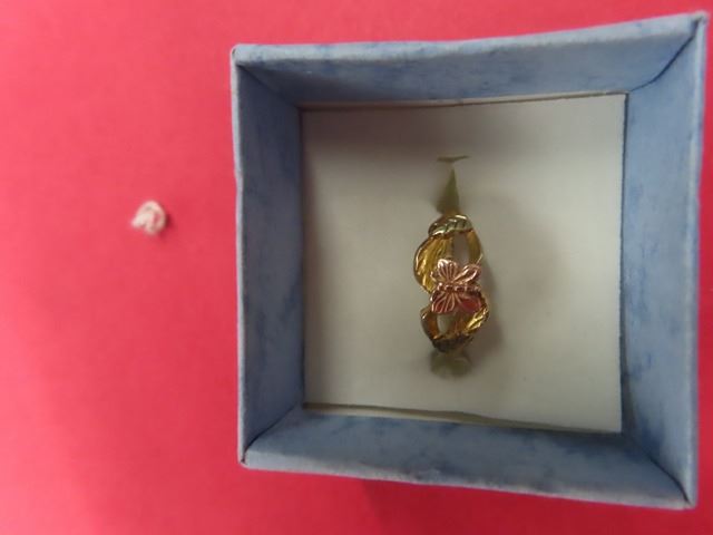 Ladies 10 KT Gold w Rose Gold Butterfly Ring Size 5?, Approx Weight 2.06 grams
