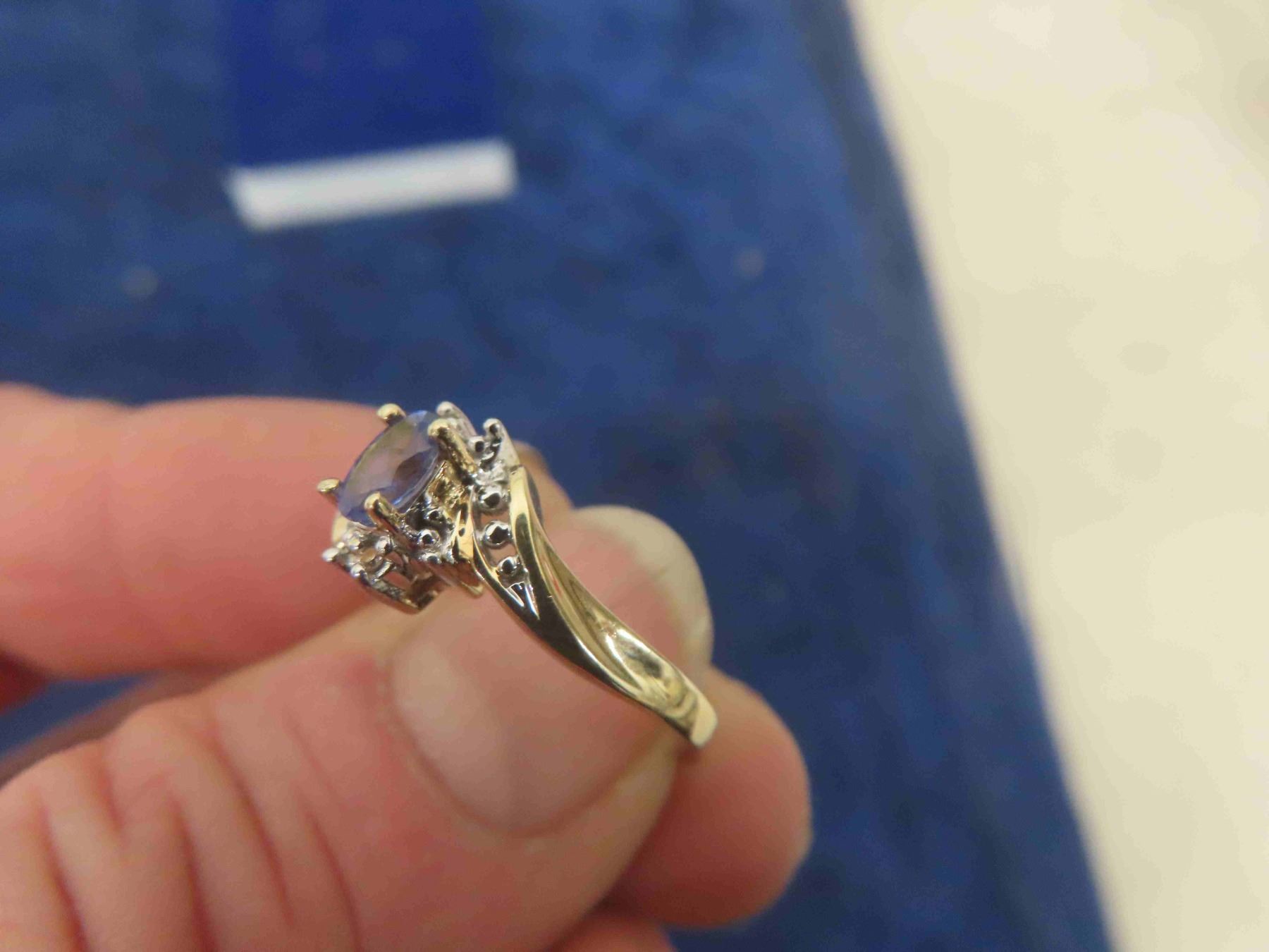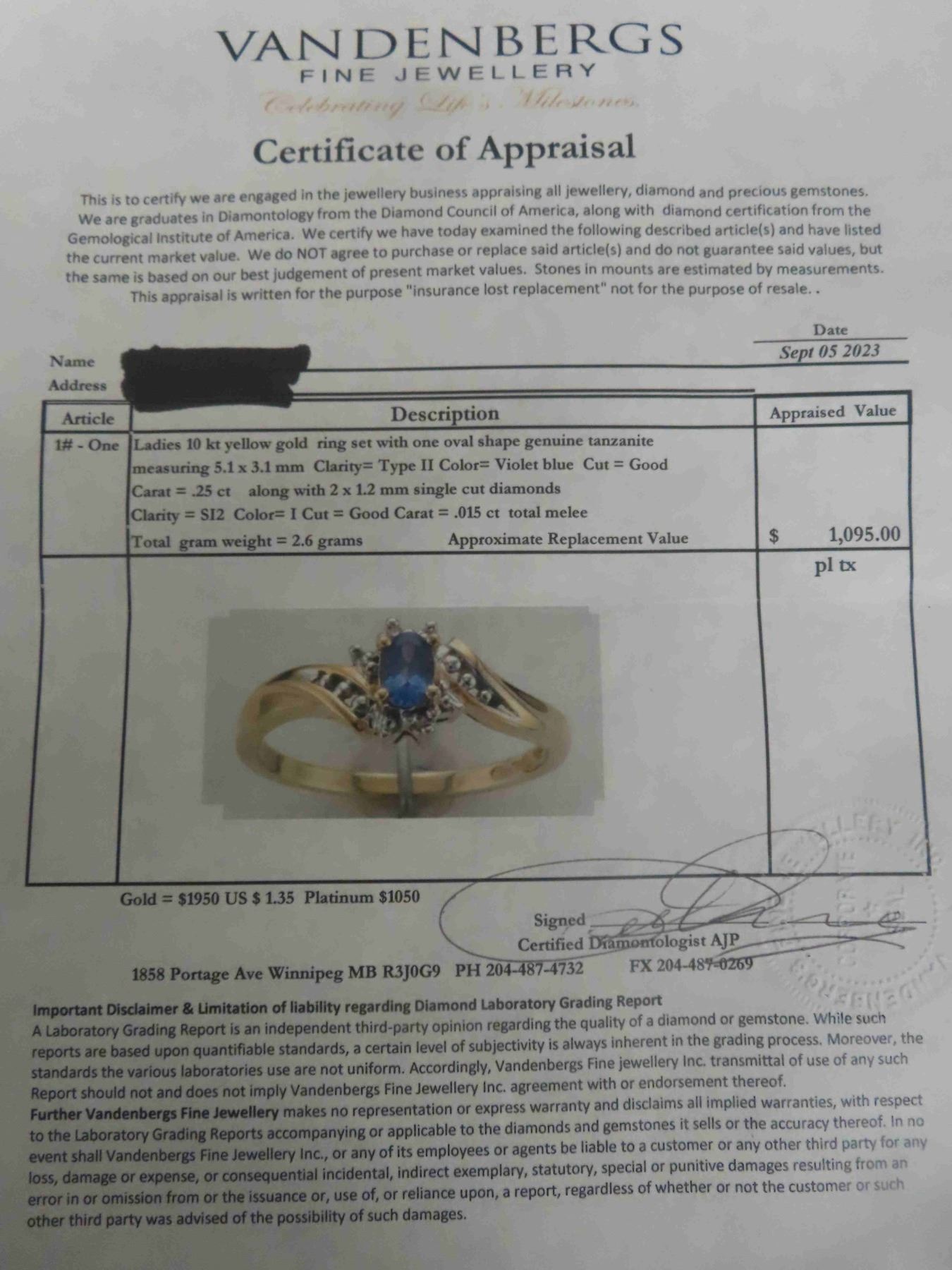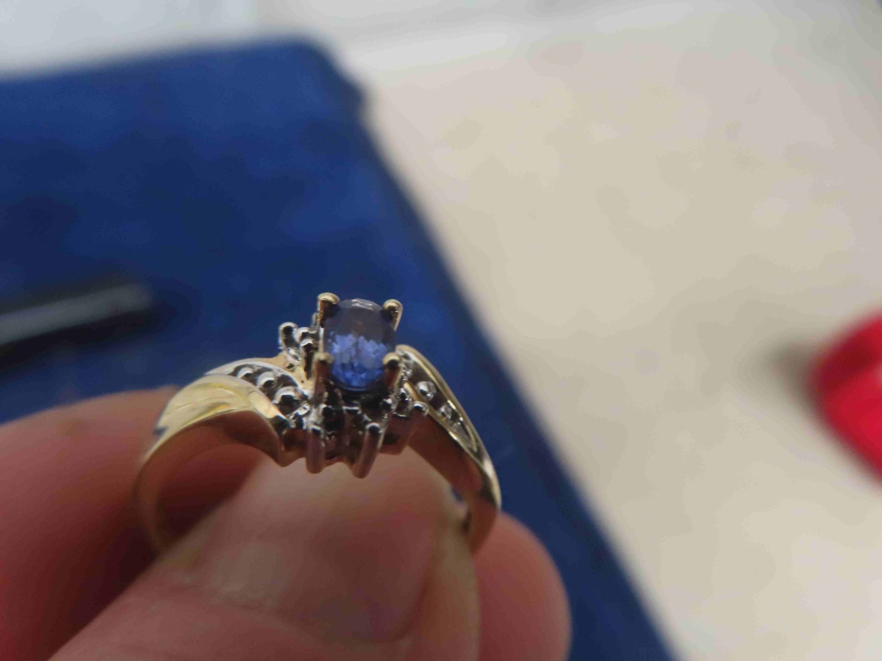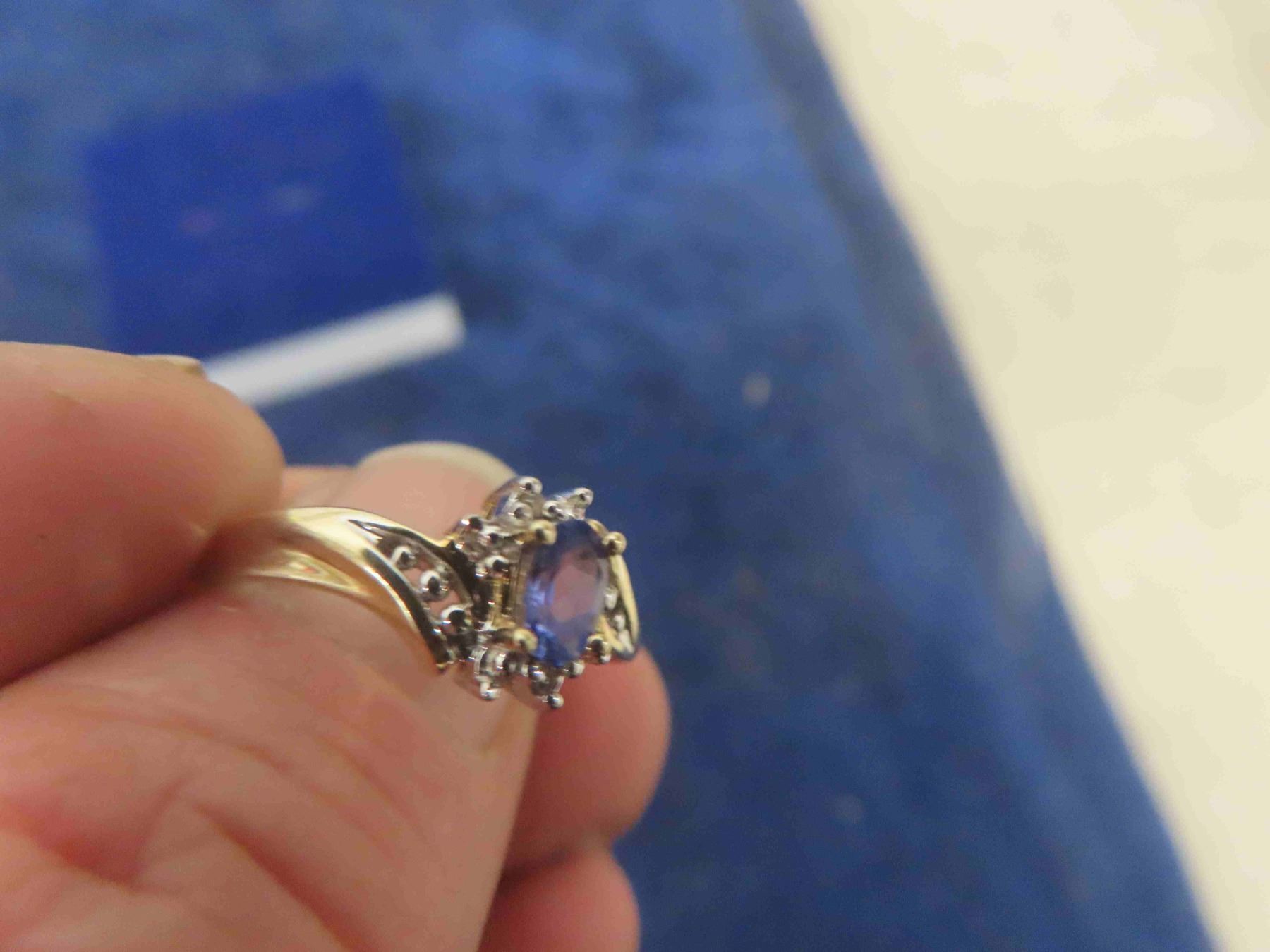 Ladies 20Kt Yellow Gold Ring with One Oval Shaped Genuine Tanzanite Measuring 5.1x3.1mm Carat : 25Ct along with 2x1.2mm Single Cut Diamonds with Appraisal - Size 6 1/2