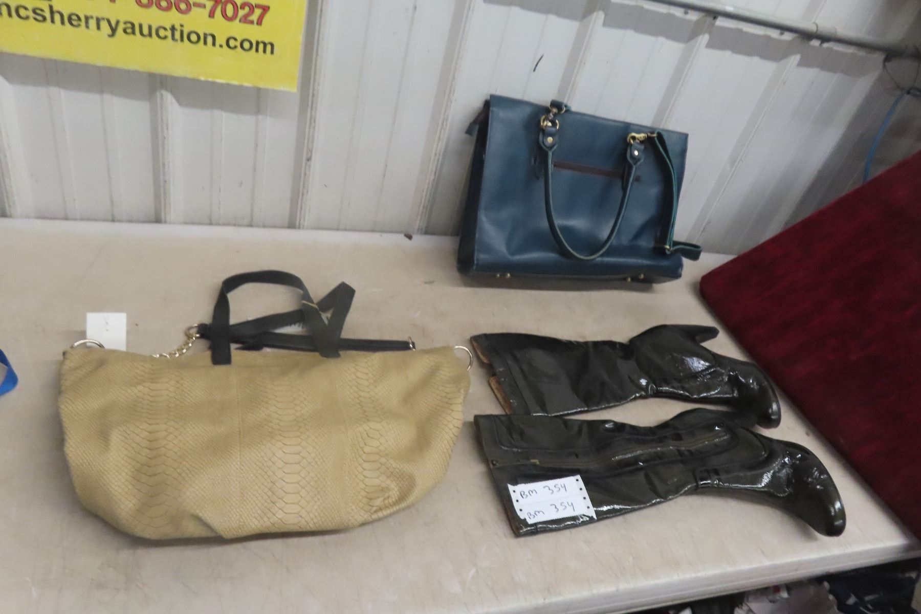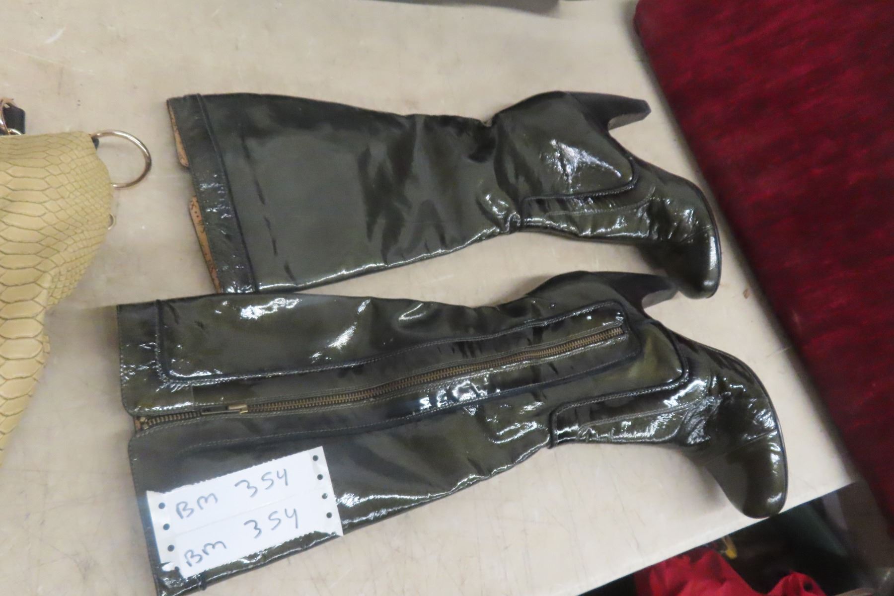 Ladies Patent Leather Green Sofft Boots Size 9, Green Leather Handbag/Briefcase Style, and New Yellow Handbag