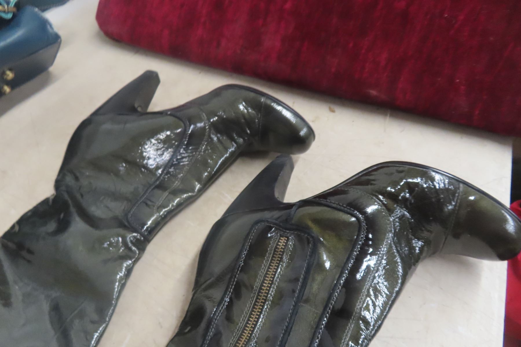 Ladies Patent Leather Green Sofft Boots Size 9, Green Leather Handbag/Briefcase Style, and New