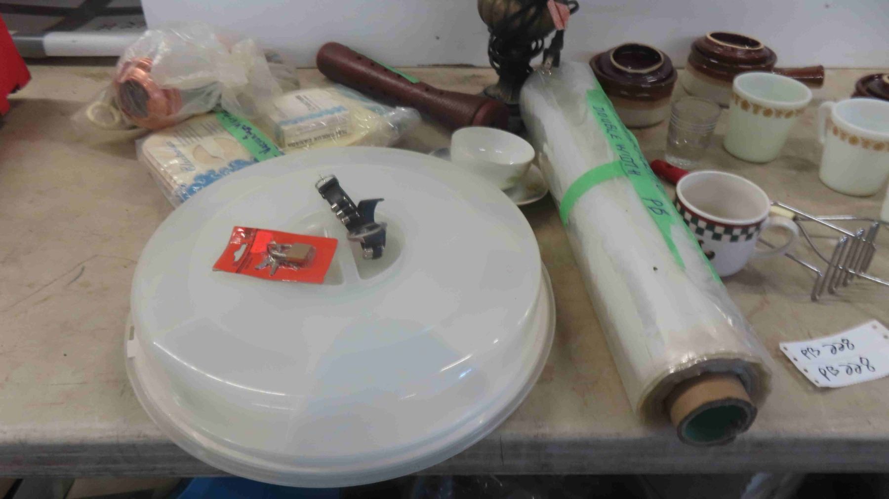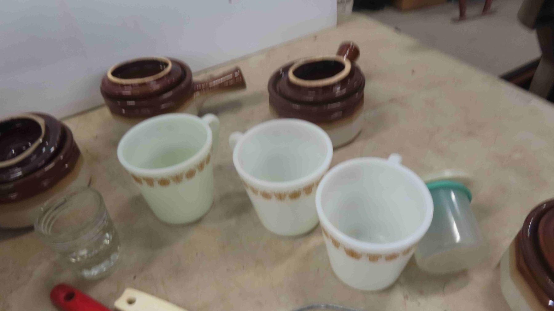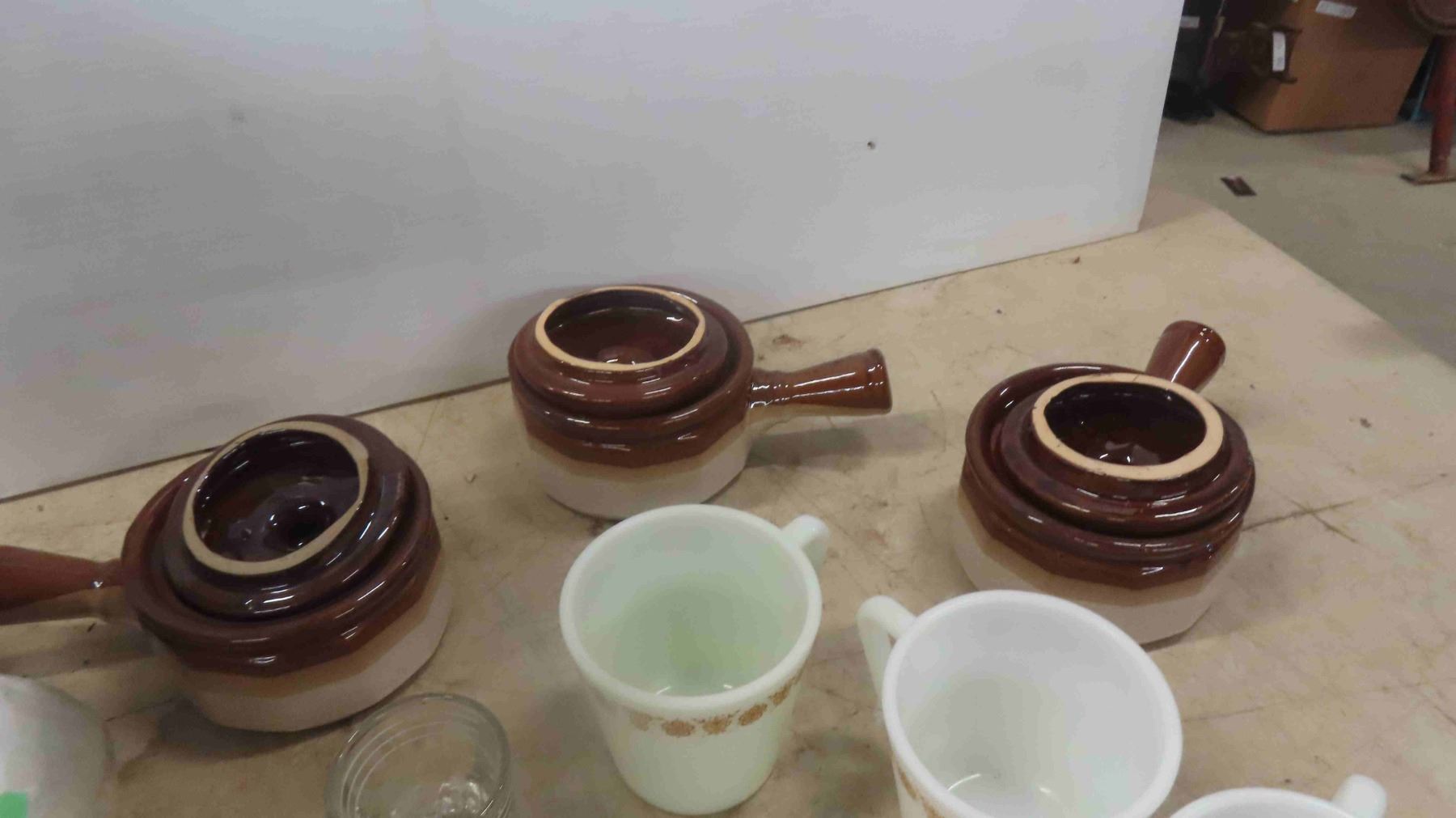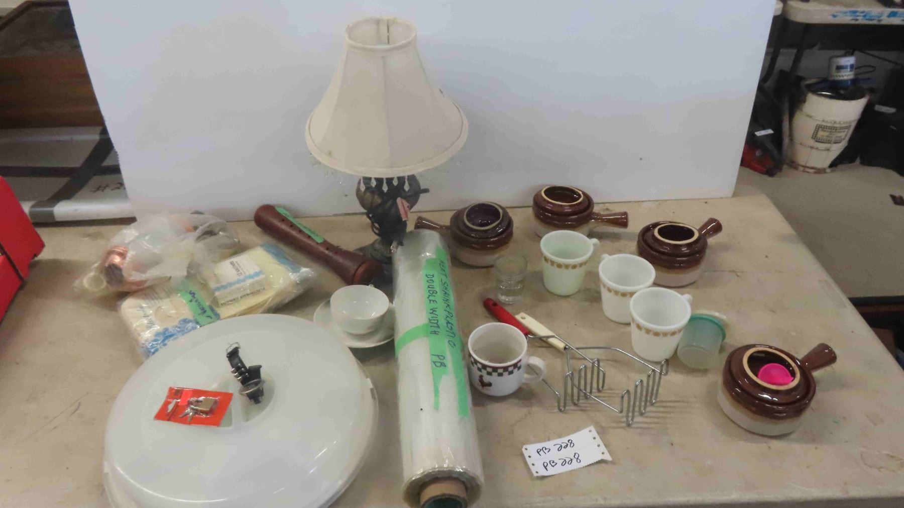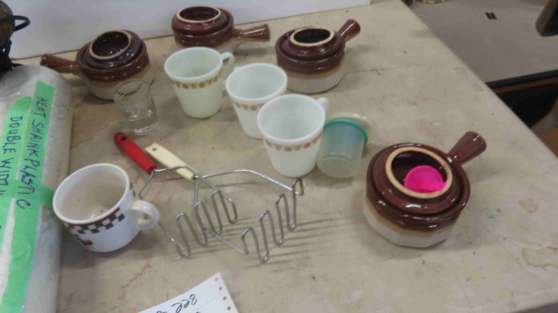 Lamp, Soup Bowls, Pyrex Cups, Typewriter, Plus