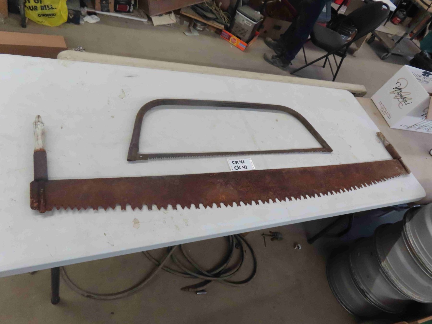 Large Antique Cross Cut Saw 66" Wide , 36" Box Saw