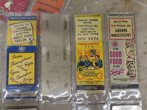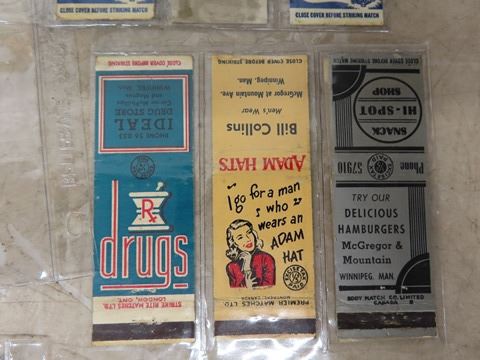 Large Assortment 1940's Winnipeg Business Match Book Covers ; Restaurant, Drug Stores, Grocer, plus more - plus on Reverse Side