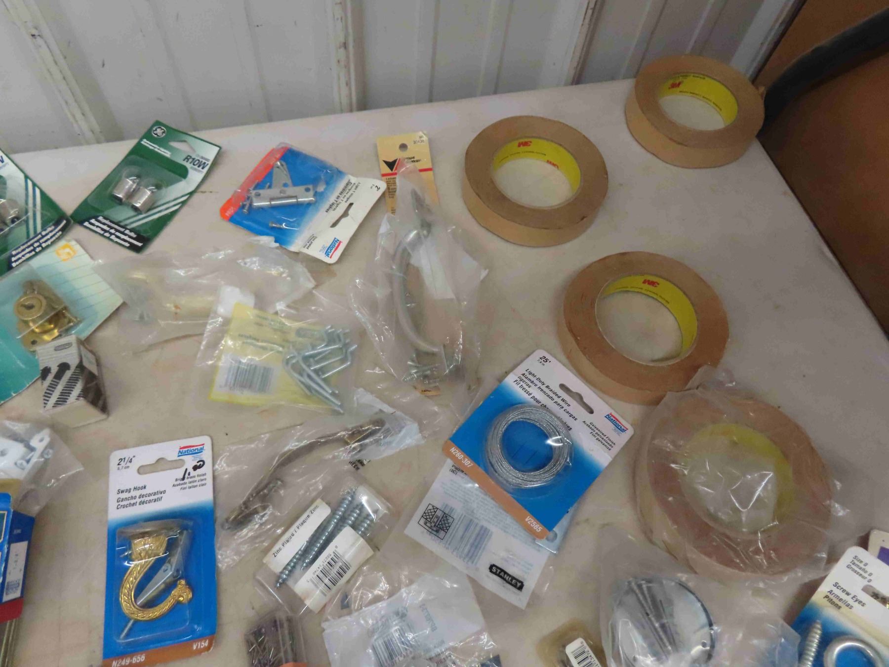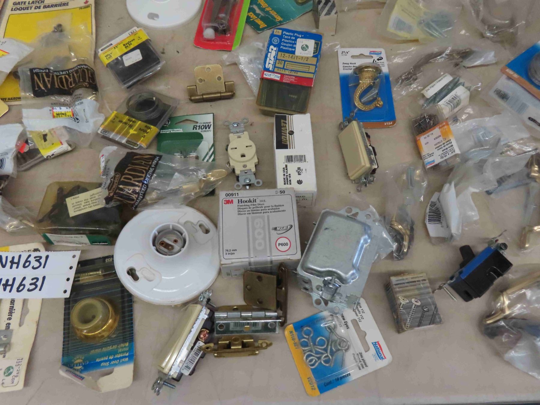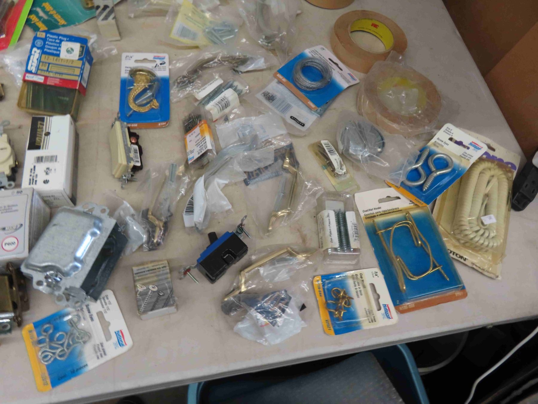 Large Assortment Packed Hardware : Wire, Clips, Hooks, Hinges, Bulbs, Door Stops, + much more