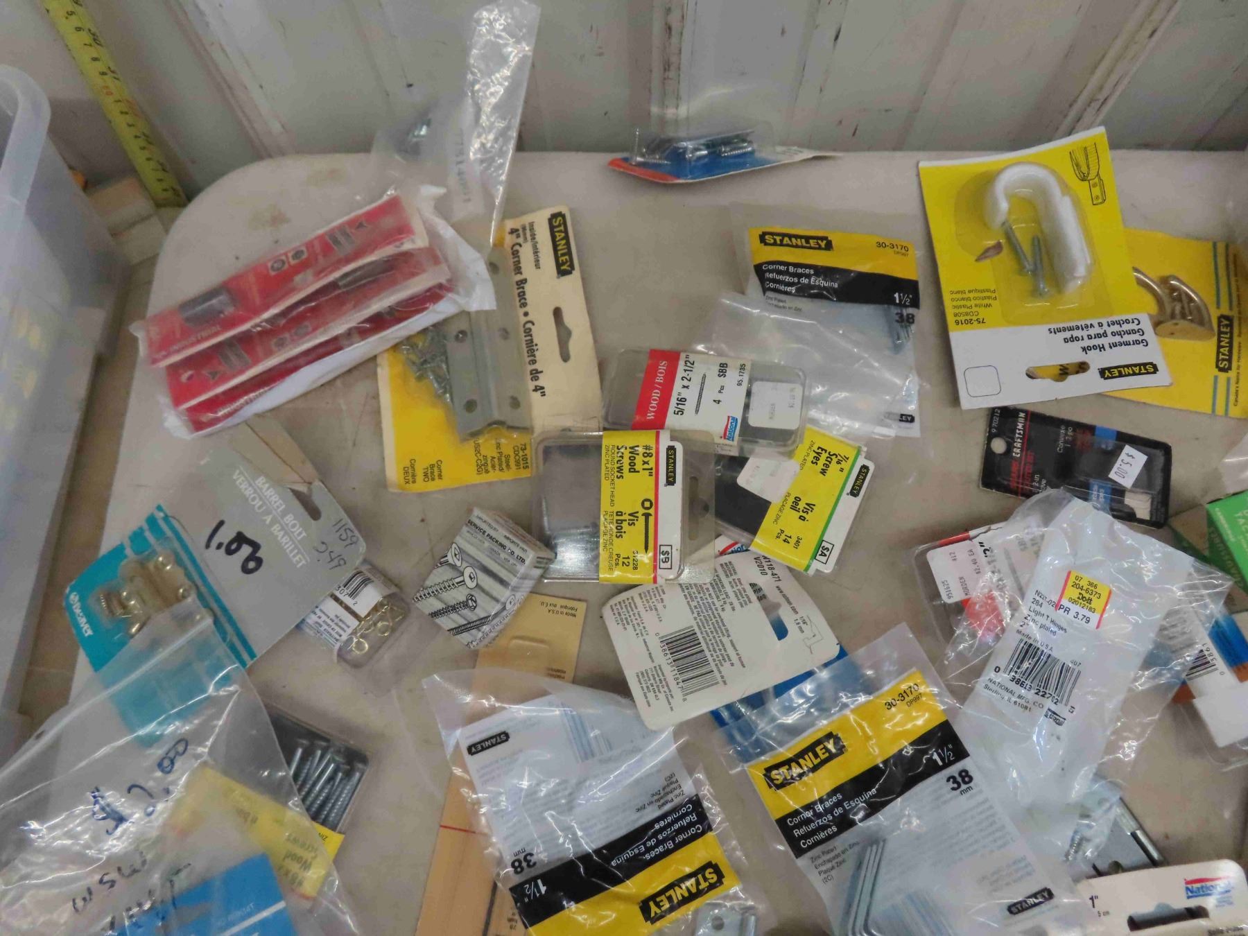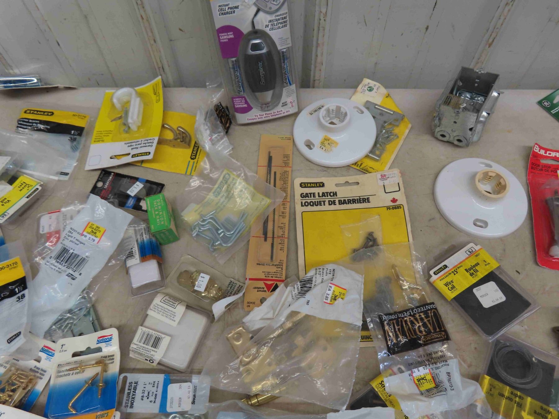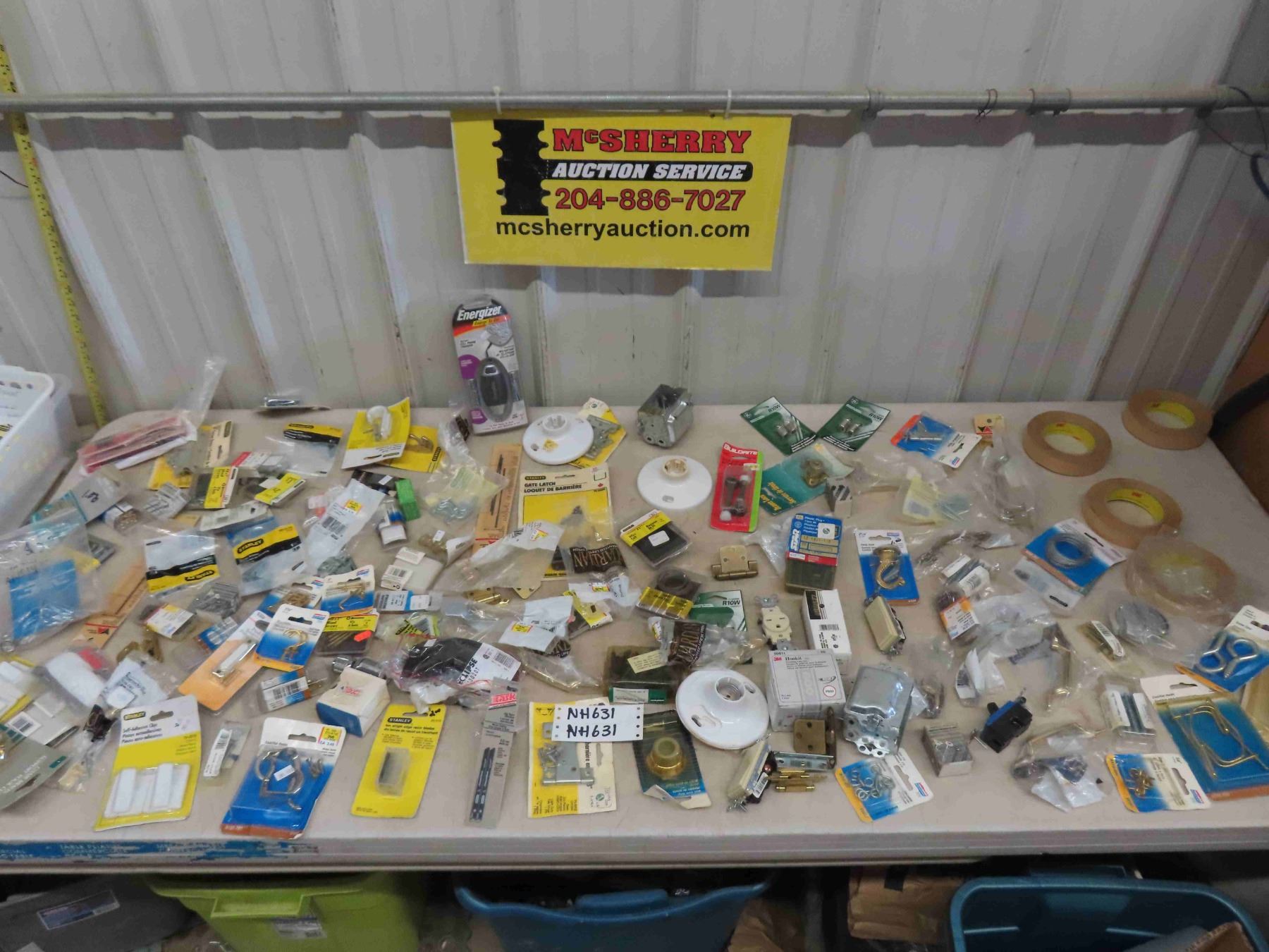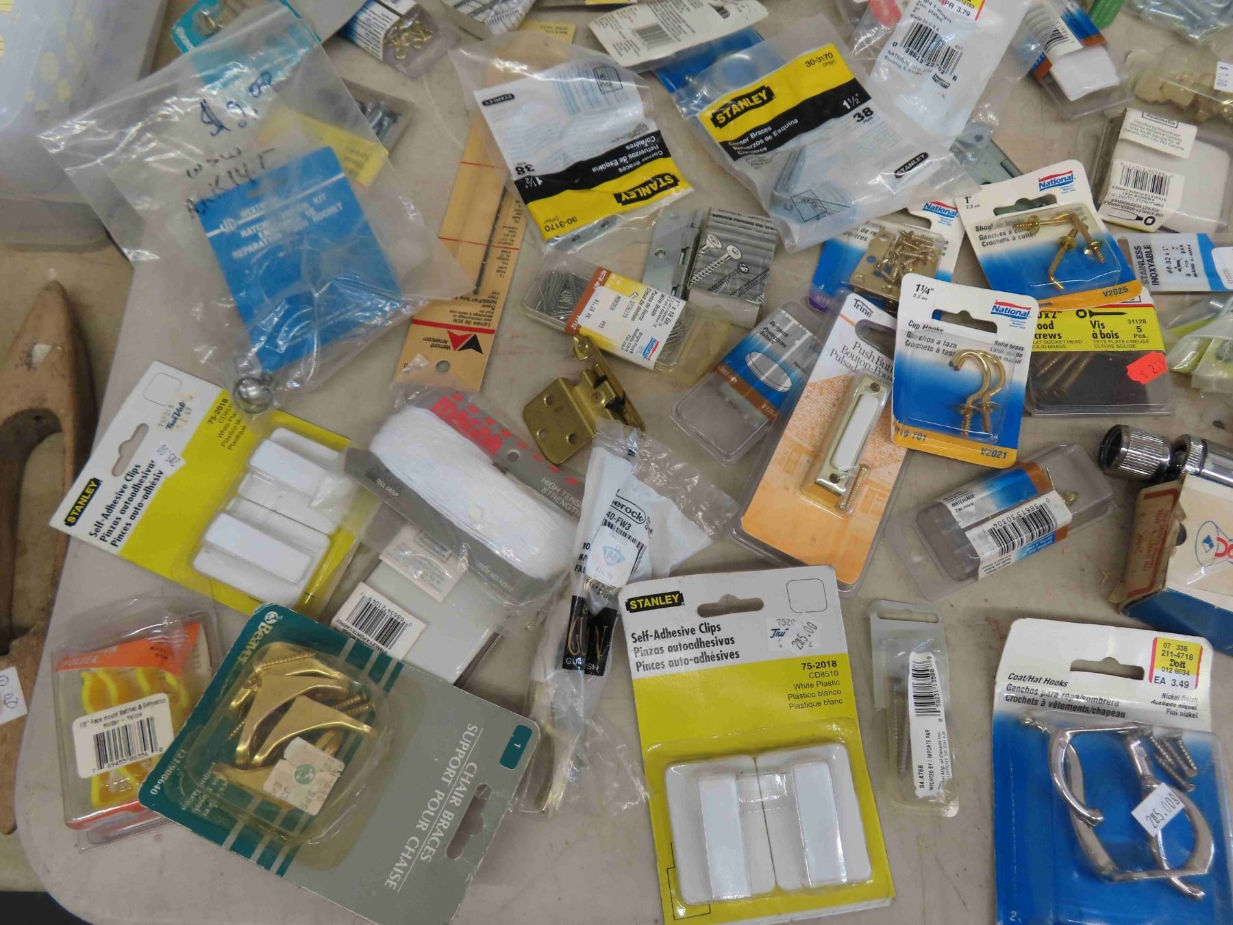 Large Assortment Packed Hardware : Wire, Clips, Hooks, Hinges, Bulbs, Door Stops, + much more