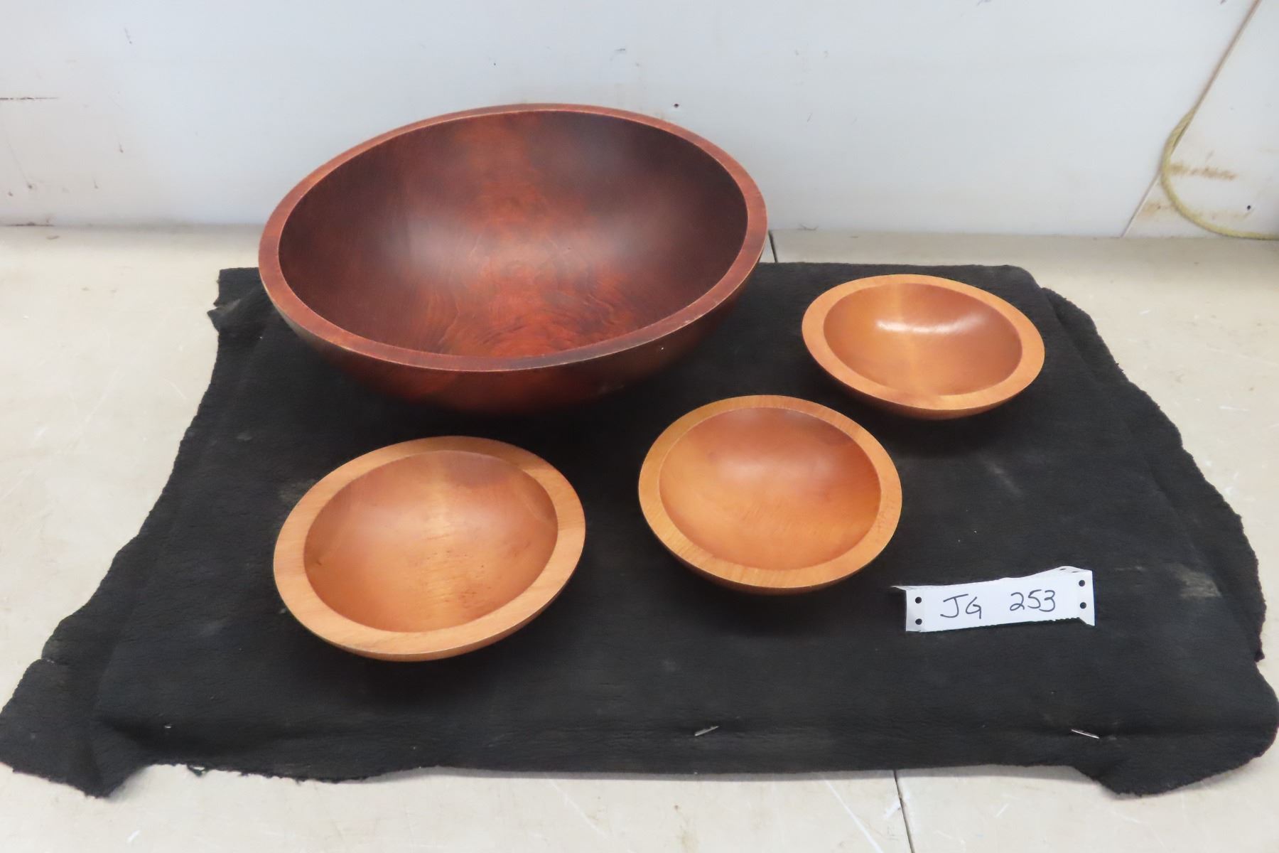 Large Baribocraft Canada Wooden Salad Bowl, 13.5" In Diameter, 3 Small Individual Salad Bowls ( Lighter Colour Than Large Bowl, Same Brand )