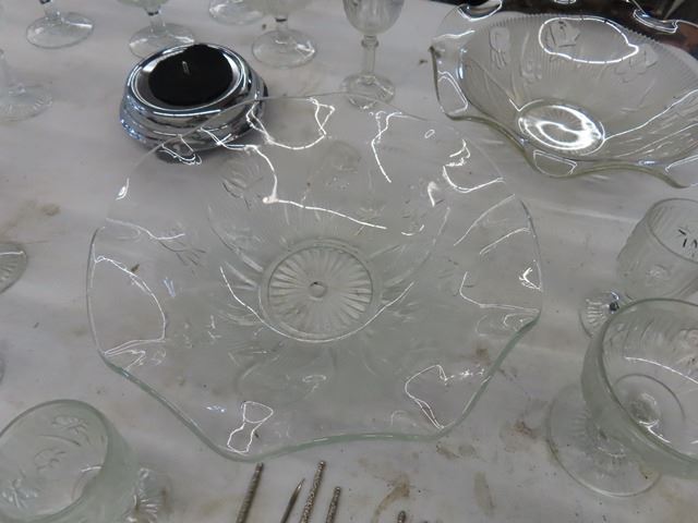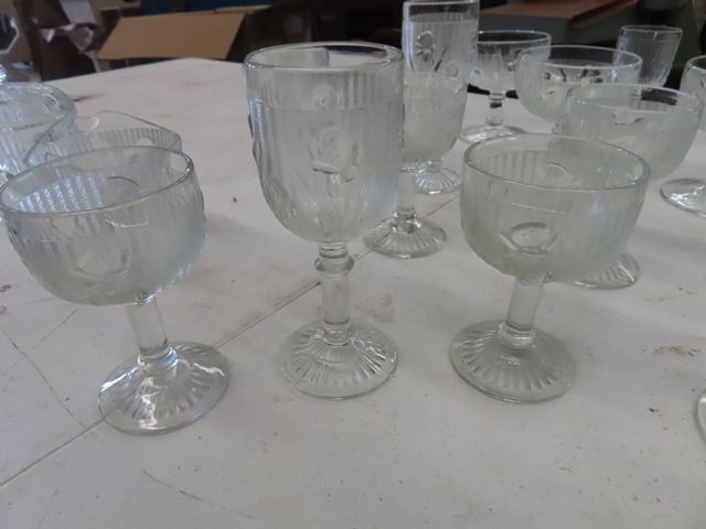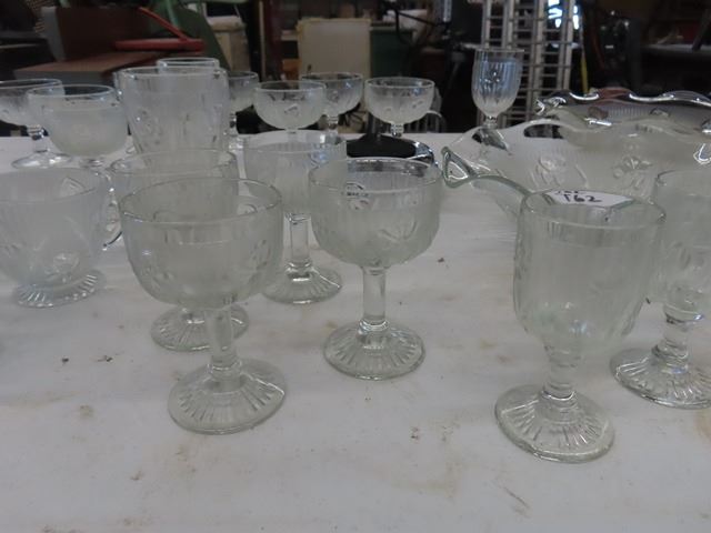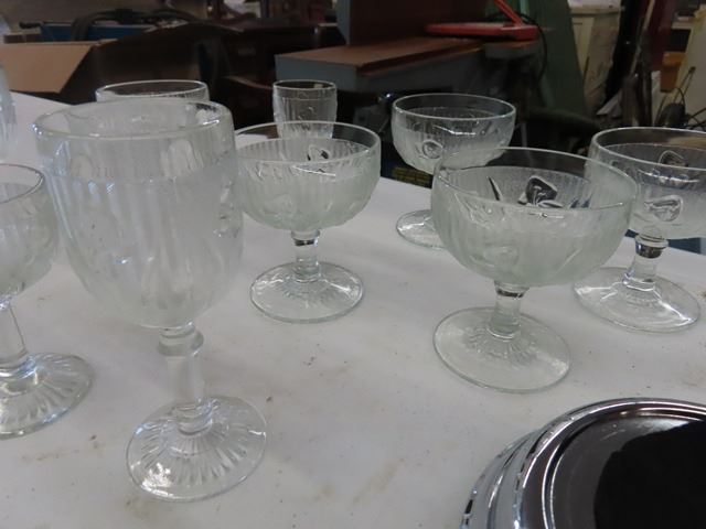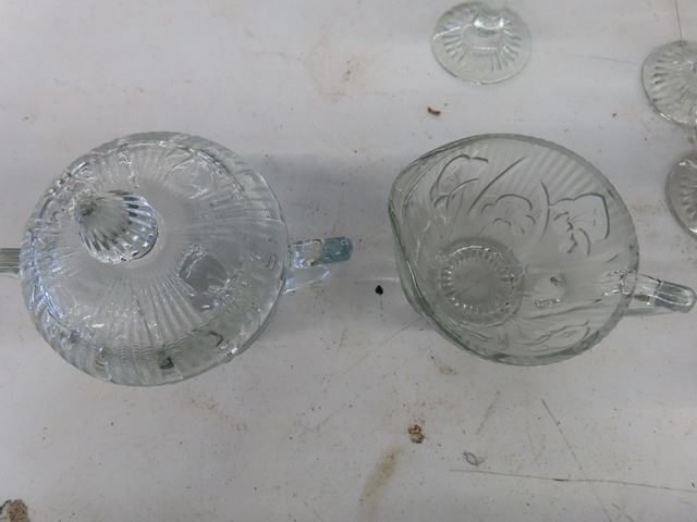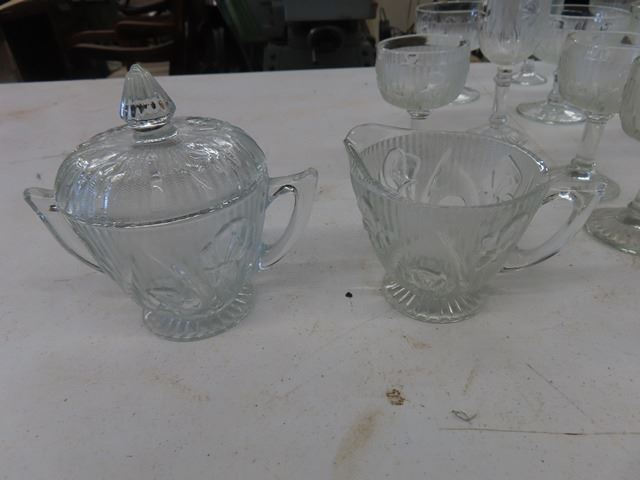 Large Collection on Vintage Jeanette Iris & Herringbone Carnival Glass - Including; Cream + Sugar with Lid, Large Frilled Bowl, Nut Bowl, 6 Metal Picks & 8 Sherbert Bowls, (10) 4.5" Wine, (4) 5.5" Wine + Liquor 4 Cordial Glasses & 1 Water Goblet