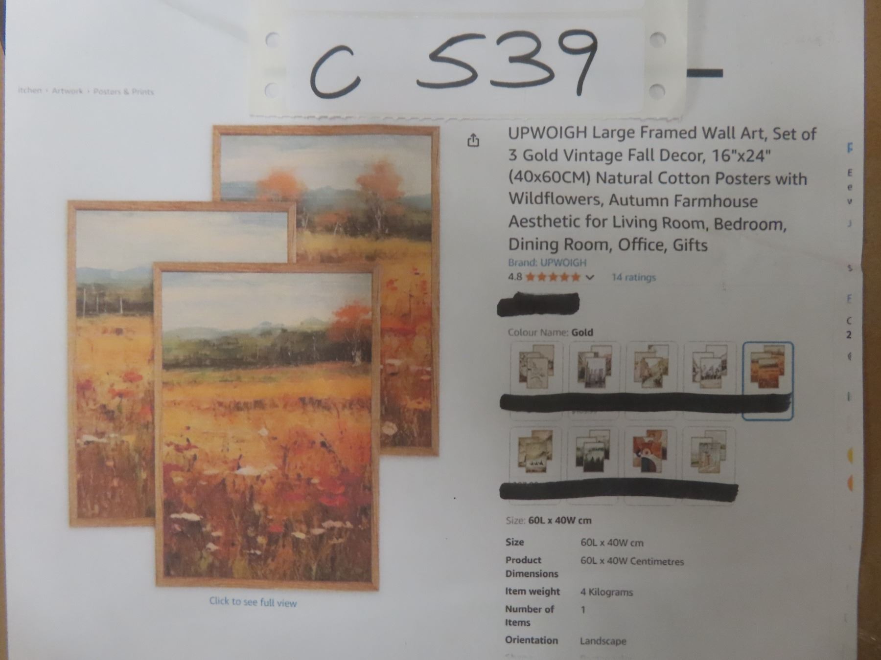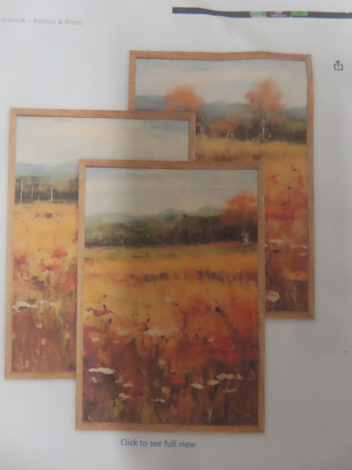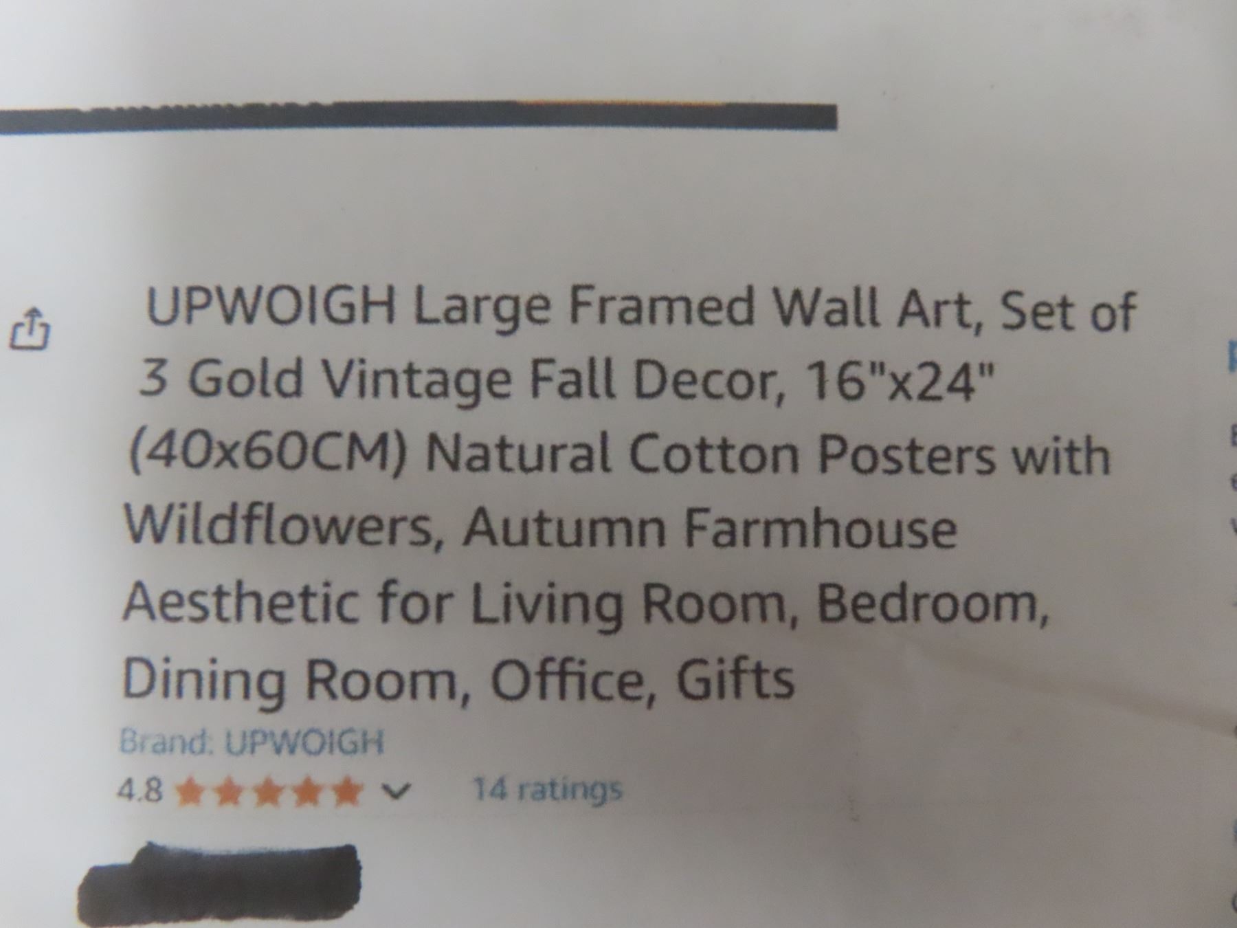 Upwoigh Large Framed Wall Art, Set of 3 Gold Vintage Fall Décor, 16''x24'' (40x60cm) Natural Cotton Posters with Wildflowers, Autumn Farmhouse Aesthetic for Living Room, Bedroom, Dining Room, Office,Gifts