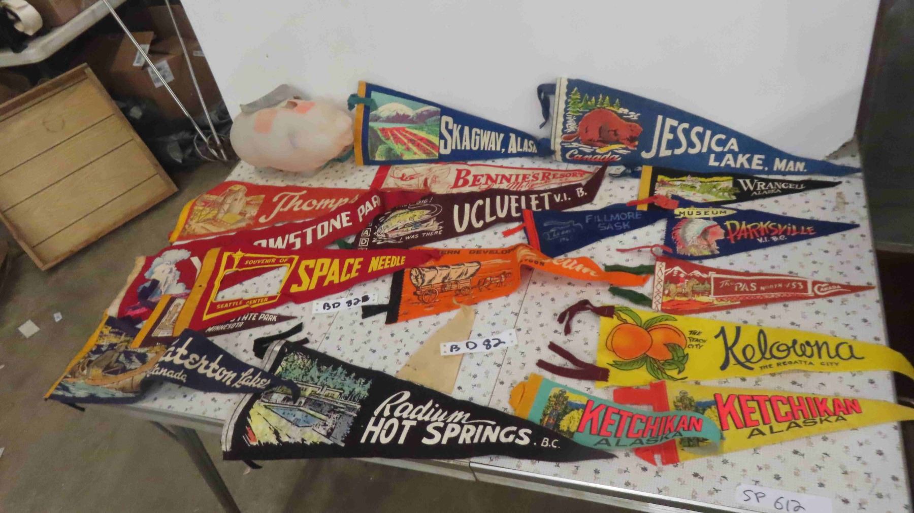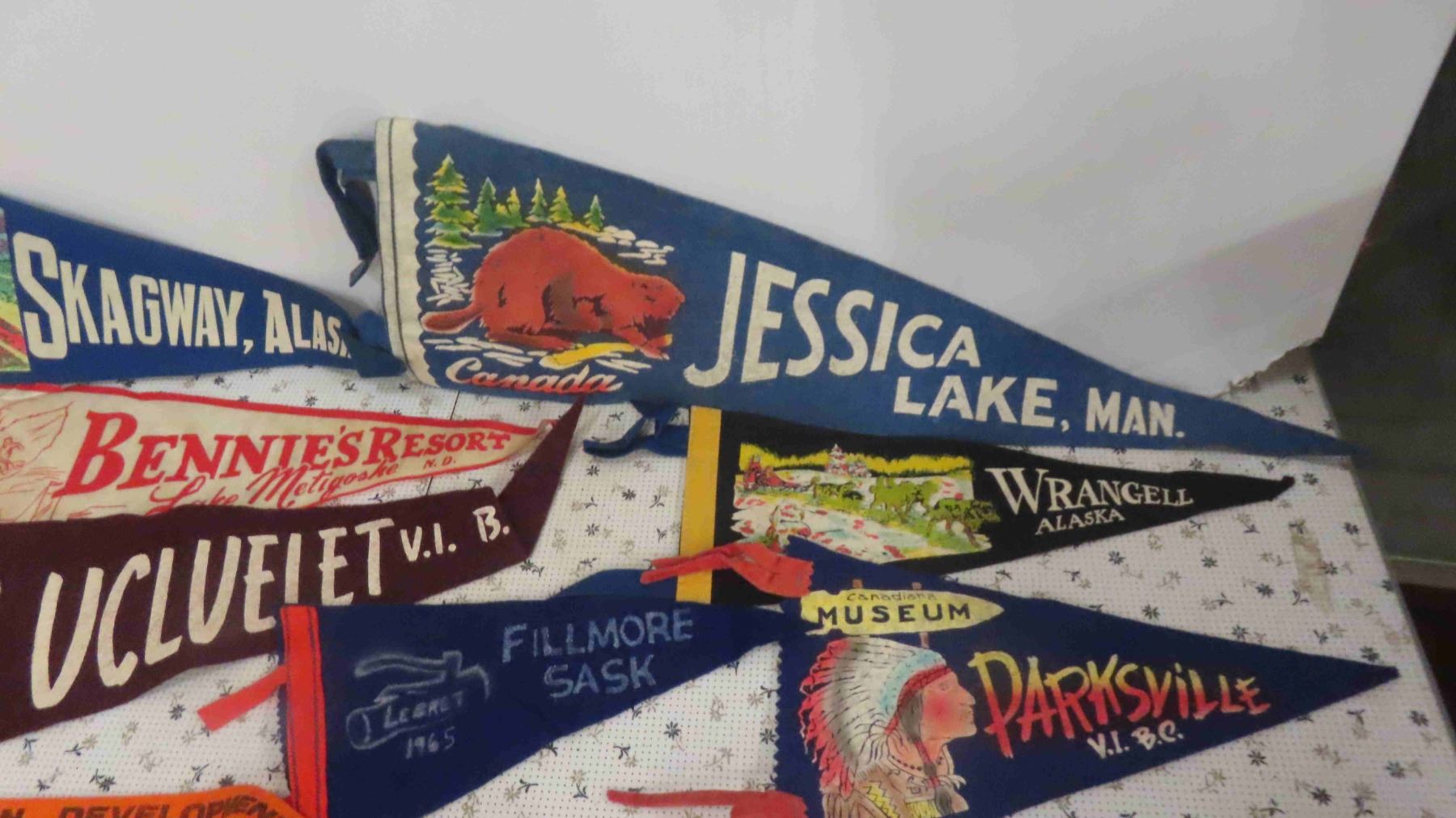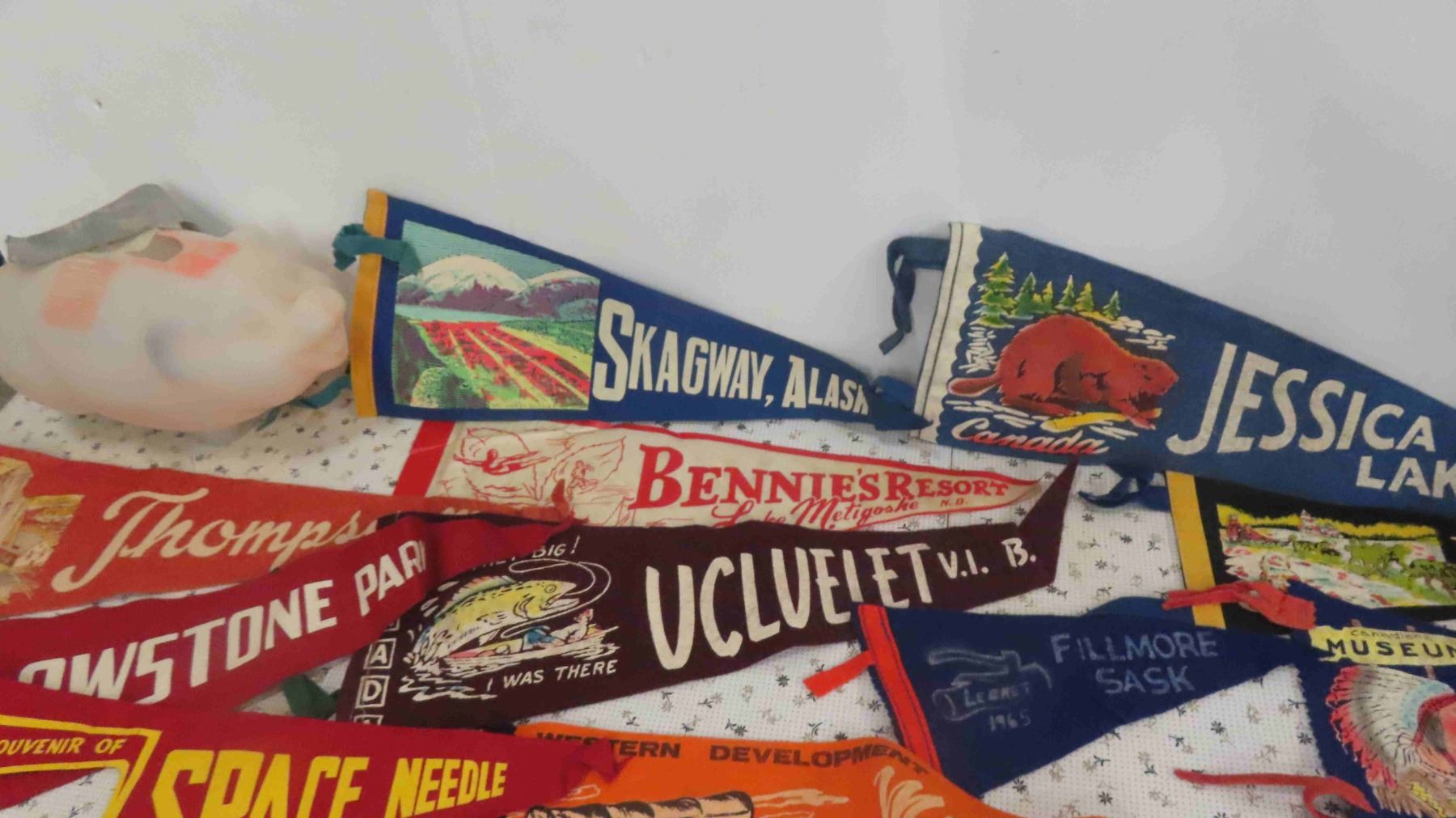 Large Lot of 1940s/50s Felt Souvenir Pennants: First Nations, Inuit, Yellowstone, Alaska & Others All in Excellent Condition