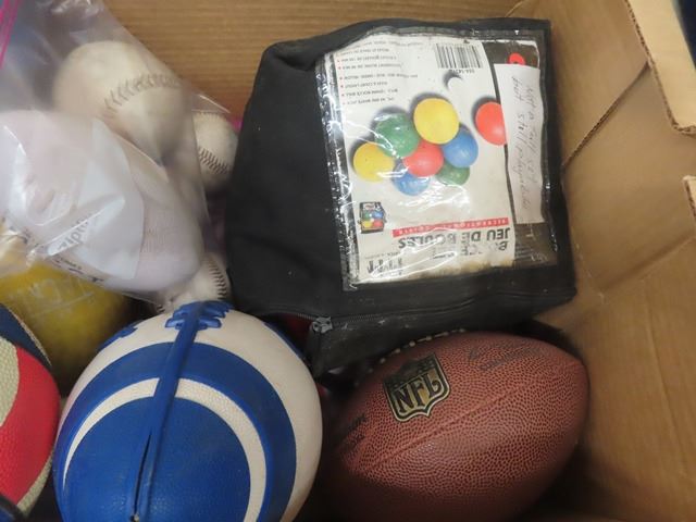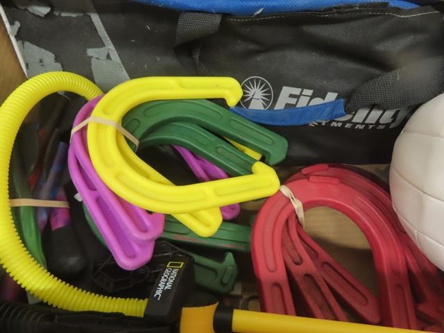 Large Lot of Yard Games + Sports Equipment; Footballs, Horse Shoes, Bocce Balls plus more