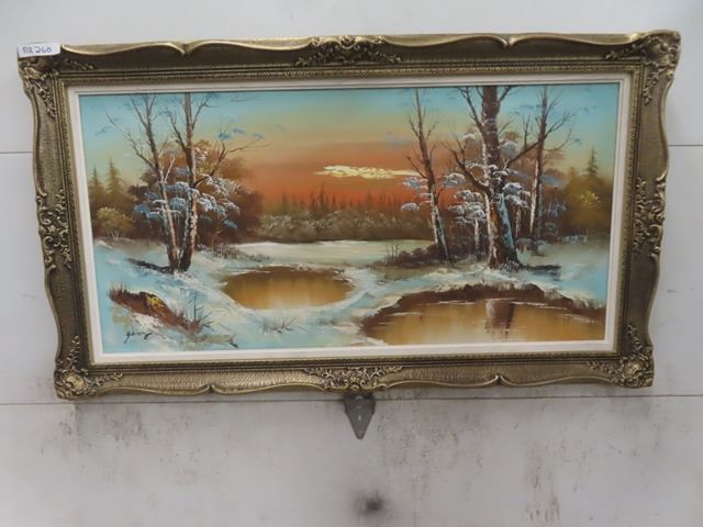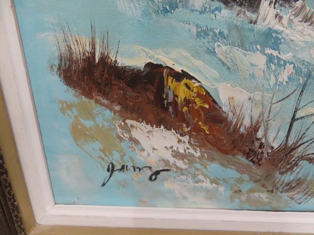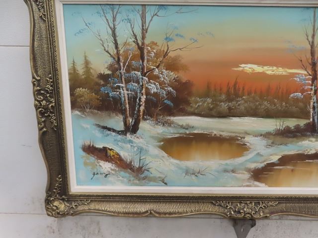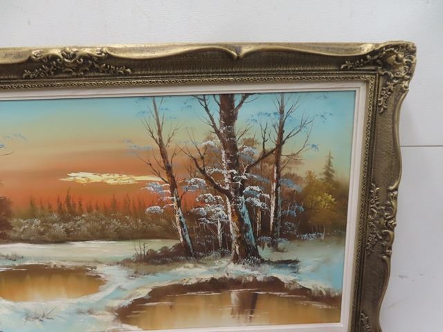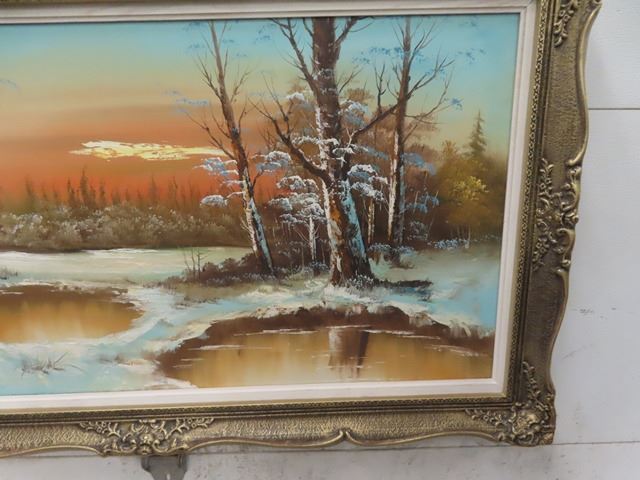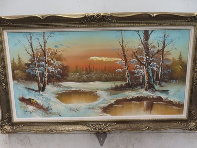 Large Oil on Canvas Winter Scene 32" X 55"
