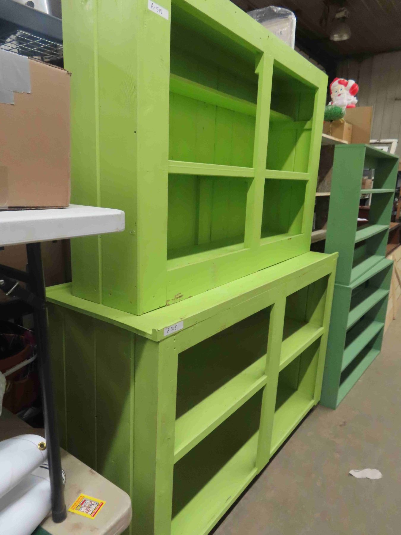 Large Painted Green 2 pc Step Back Display Shelving 24" x 67" x 84" - Ready to Go Store Shelving!