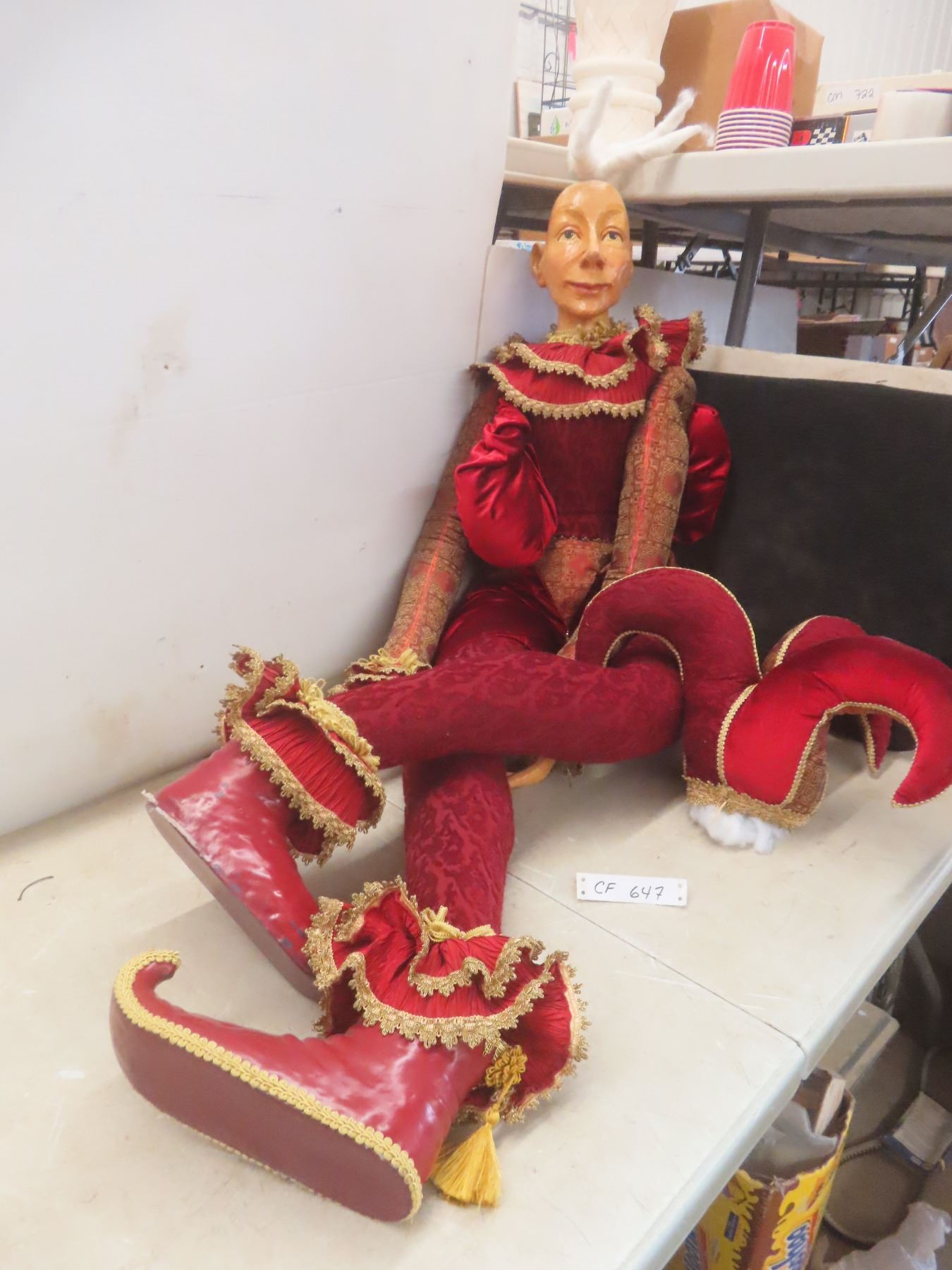 Large Porcelain Jester Doll Almost 5 FT Tall Damage on Right Hand