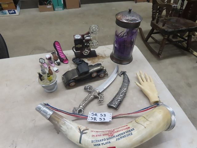Large Powder Horn, Radio Car, Decorative Blade, plus other Ornaments
