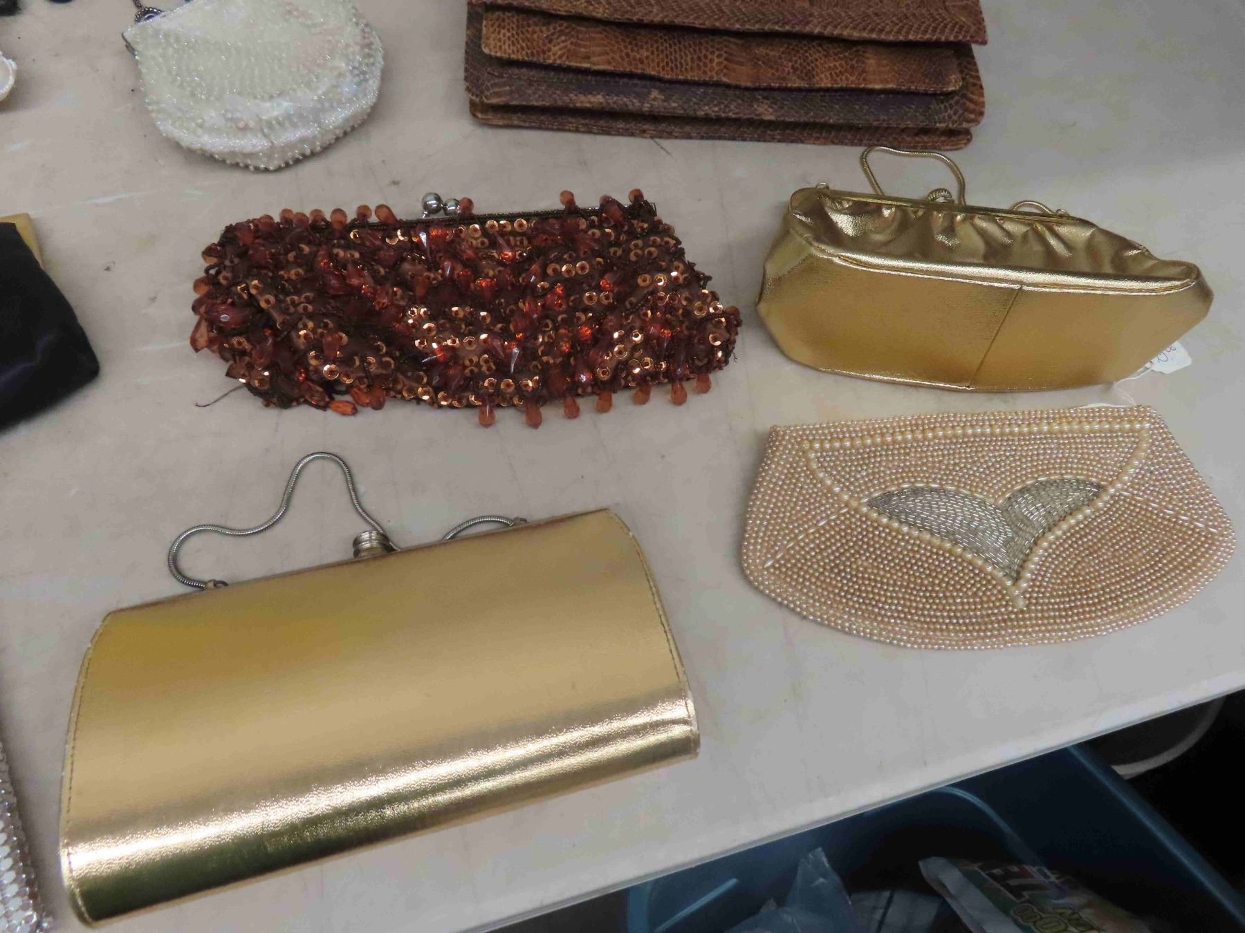 Large Variety of Vintage Purses, Bags, Clutch Purses, Snake Skin? Purse, plus more - Many Beaded