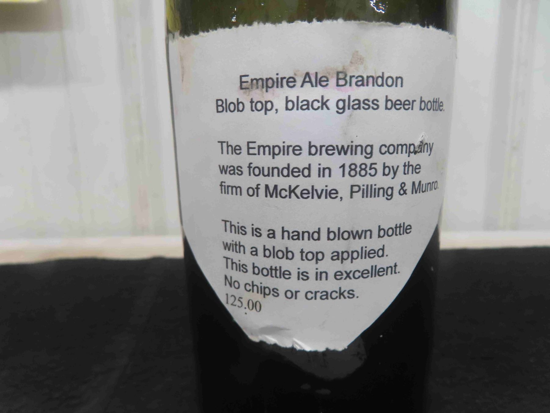 Late 1800's Brandon Brewing Ale Blob Top Black Glass Bottle - Excellent Condition, No Chips or Cracks