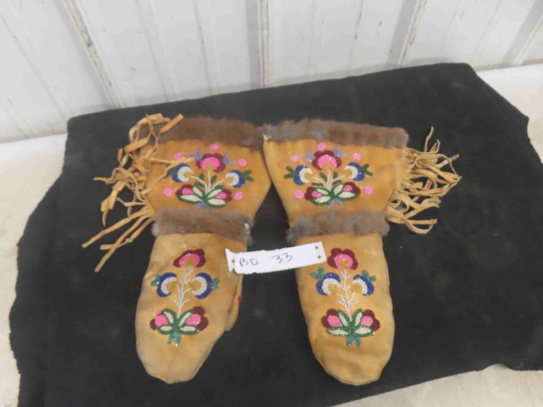 Late 1800s First Nations Cree Beaded Mitts, Thumb is Beaded (Unusual) Excellent Condition, Museum Piece